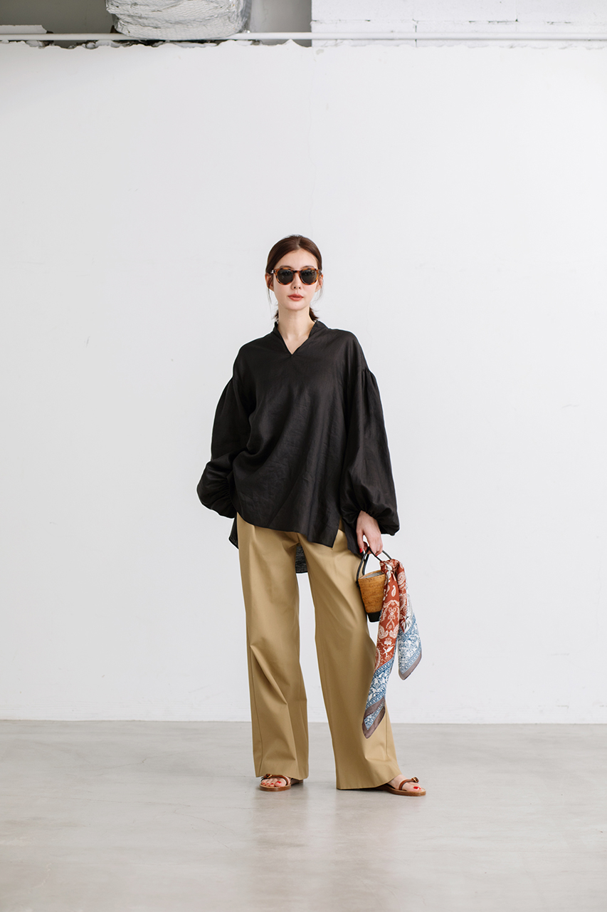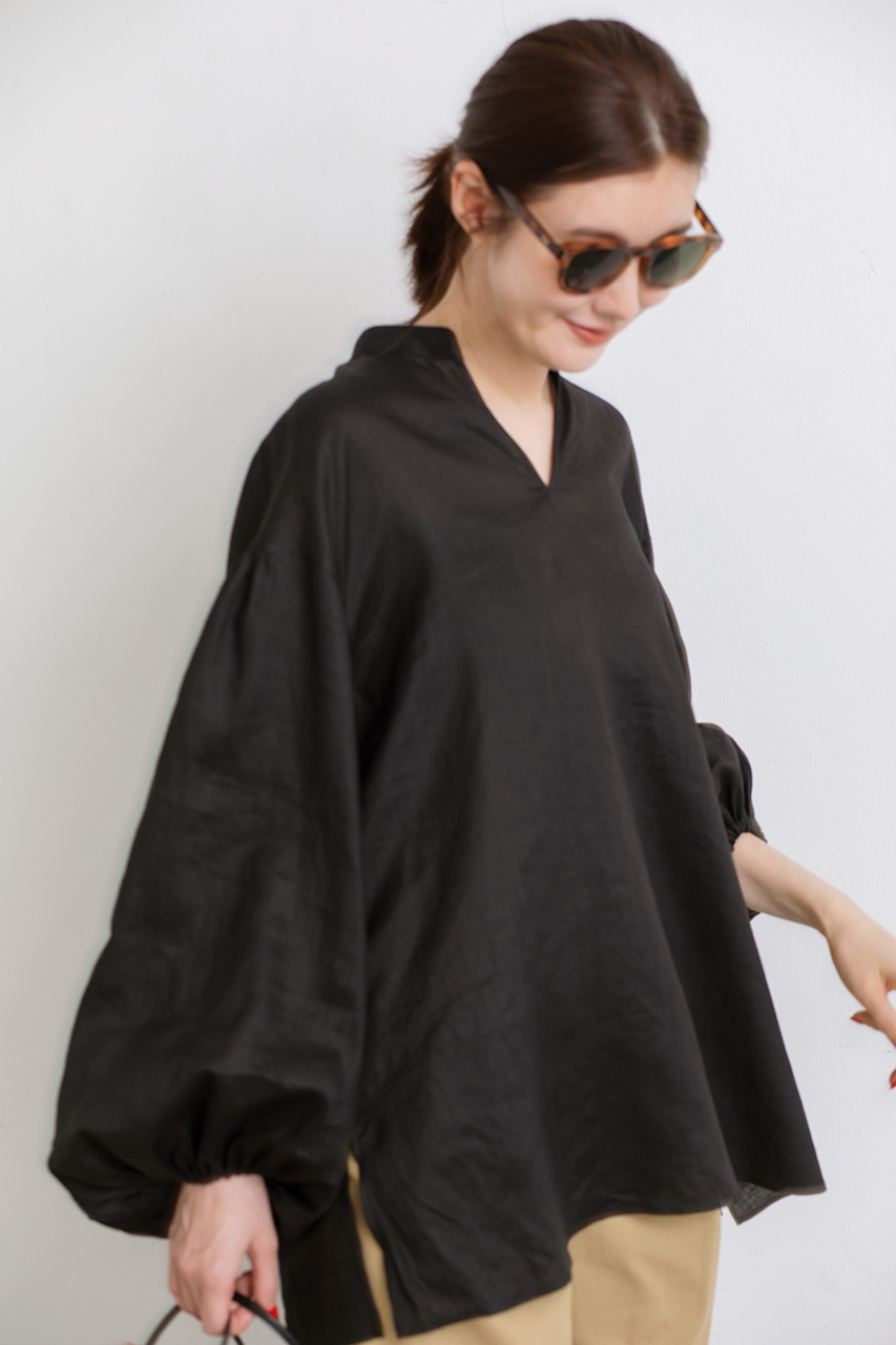 ラミーの極細糸を丁寧に織り上げた、高密度ローン素材を使用したスキッパーブラウス。