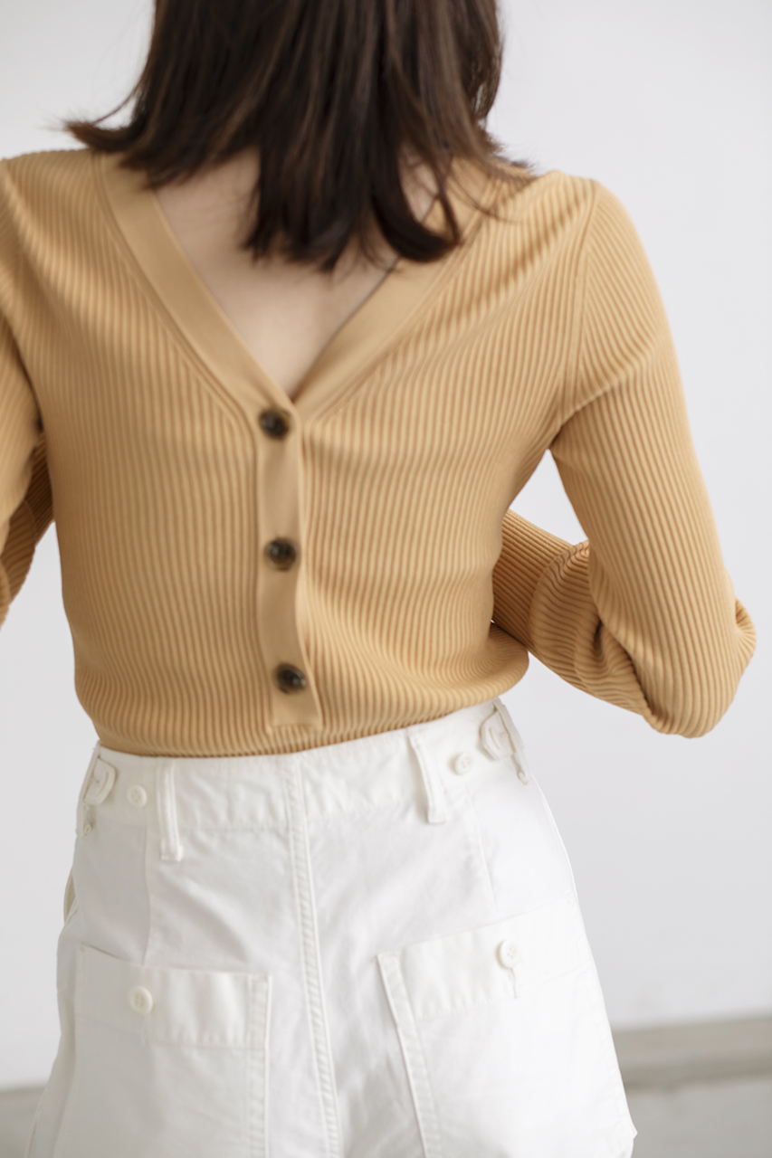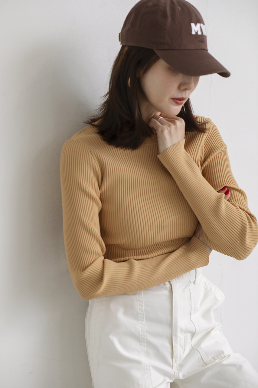 前後どちらでも着られる2WAYデザインが魅力の、シンプルフェミニンなリブニットプルオーバー。