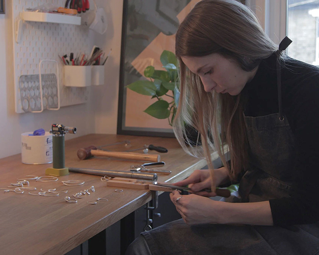 ラグジュアリーブランドでファッションデザイナーを務めたソフィー・マッケイが手がけるジュエリーブランド「バー ジュエリー」。ブランド名は、ジュエリーになる前の“バー”のかたちに着想を得て、“基本に立ち返る”という美学を込めたもの。