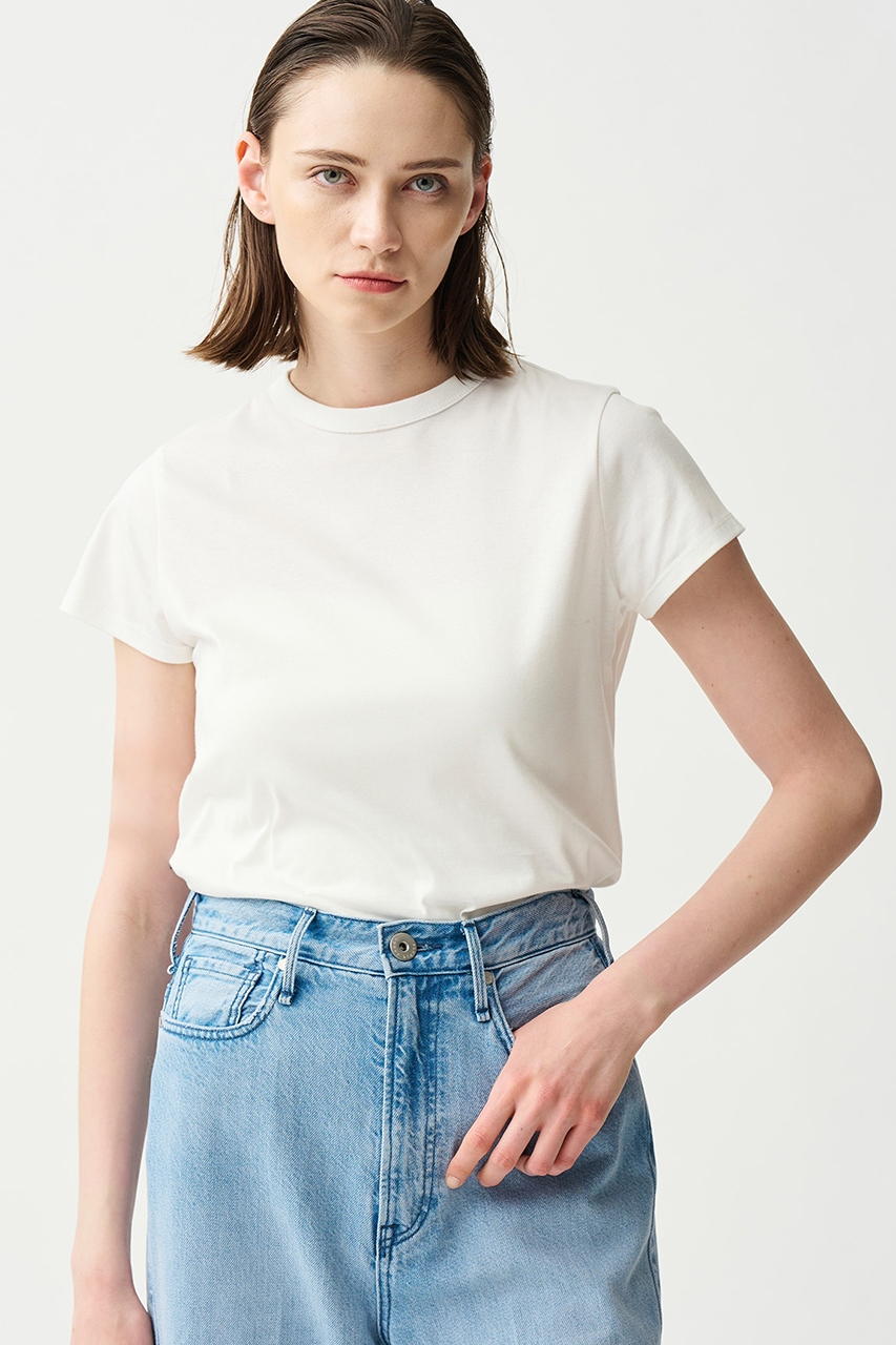 コンパクト糸を使用し、極限まで毛羽を落とすことで、ハリコシと滑らかさのあるスムース生地。コンパクト糸は、通常の糸に比べ毛羽が少なくシルクのような光沢と滑らかさが出るのが特徴です。