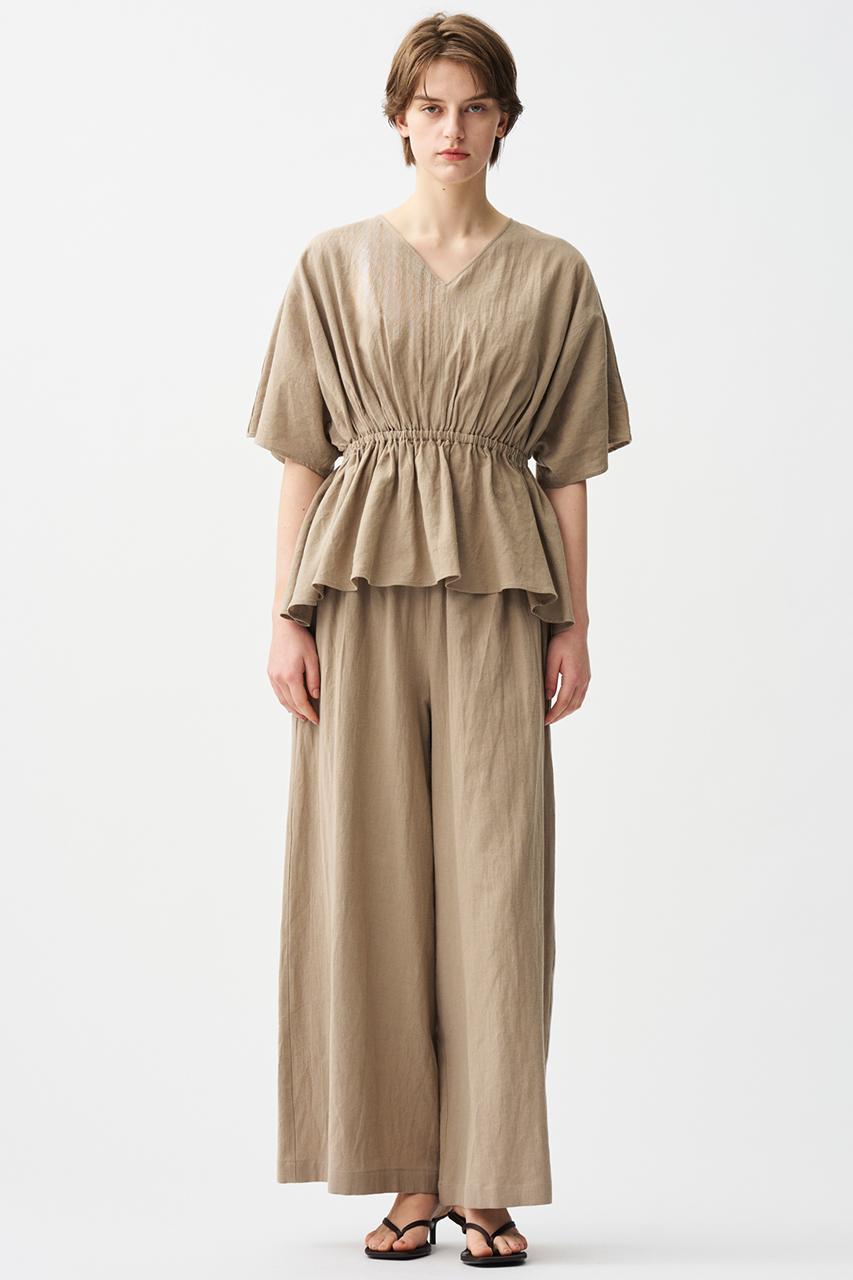 綿麻の混紡糸(2種類以上の異なる繊維を混ぜ合わせ、それぞれの性能を高めて紡績した糸)を使用したナチュラル感のある素材です。
