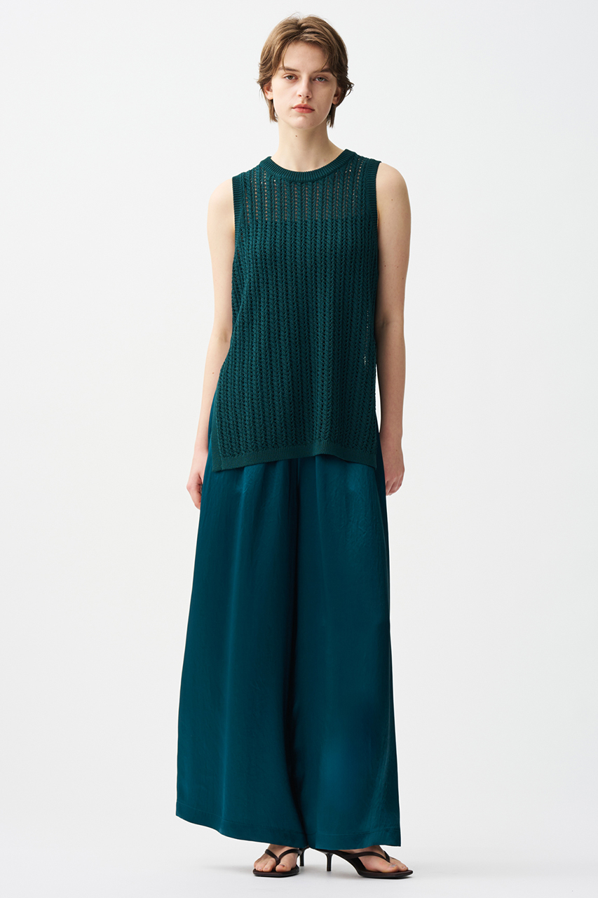 毛羽を落とした極細番手糸をさらに超強撚に仕上げた糸を使用することで、ドライタッチで柔らかい風合いを出しています。ガーゼ調に編んでいる為、繊細で優しい肌触りが特徴。