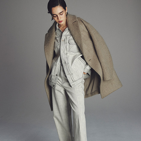 自然なヴィンテージ感の出る生地を目指し、開発を重ねました。古着らしいシボ感とタテ落ち感がほかにない"アッパーハイツ"らしい顔を出してくれます。