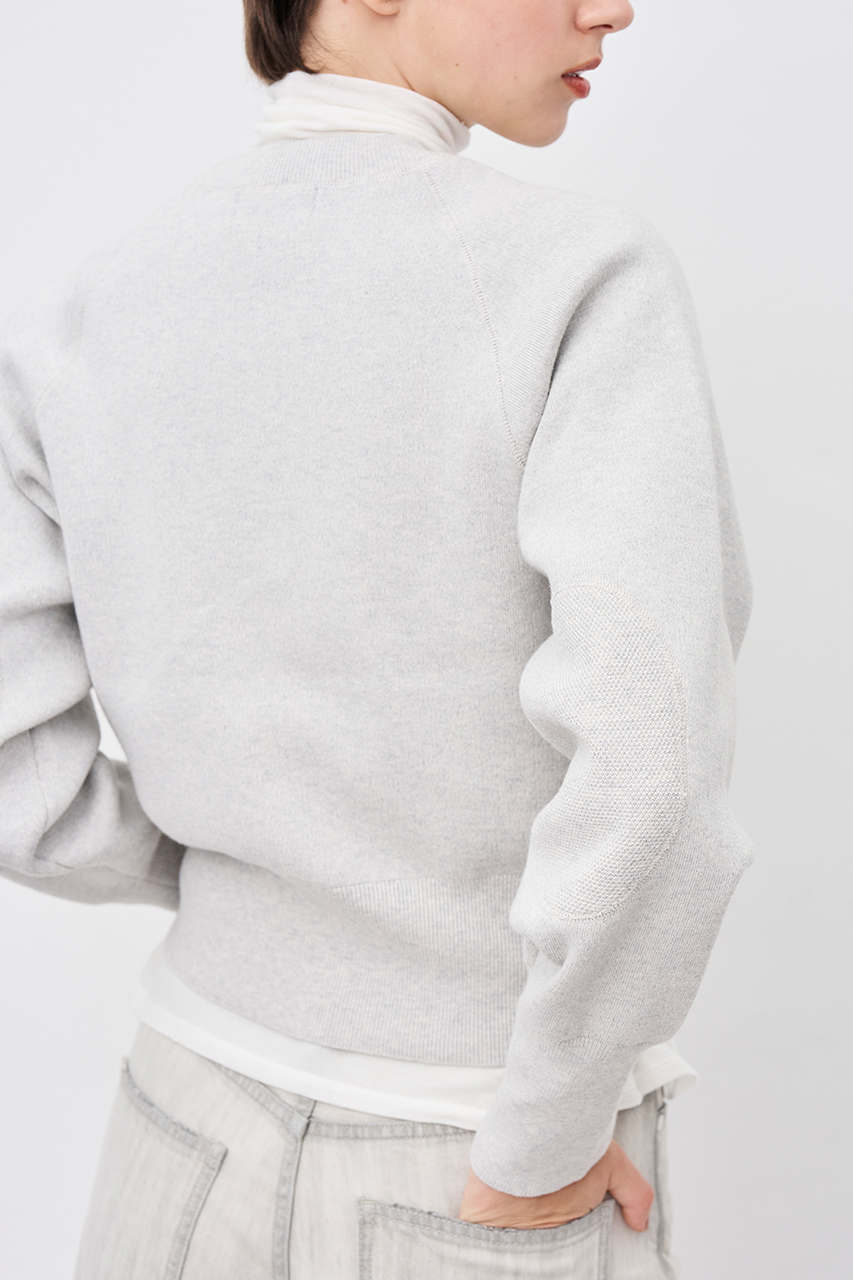 カシミヤ混のスムース編みで肉感がしっかりある素材です。柔らかく上質な肌触りと保温性が良く、温かみのある素材に仕上げています。