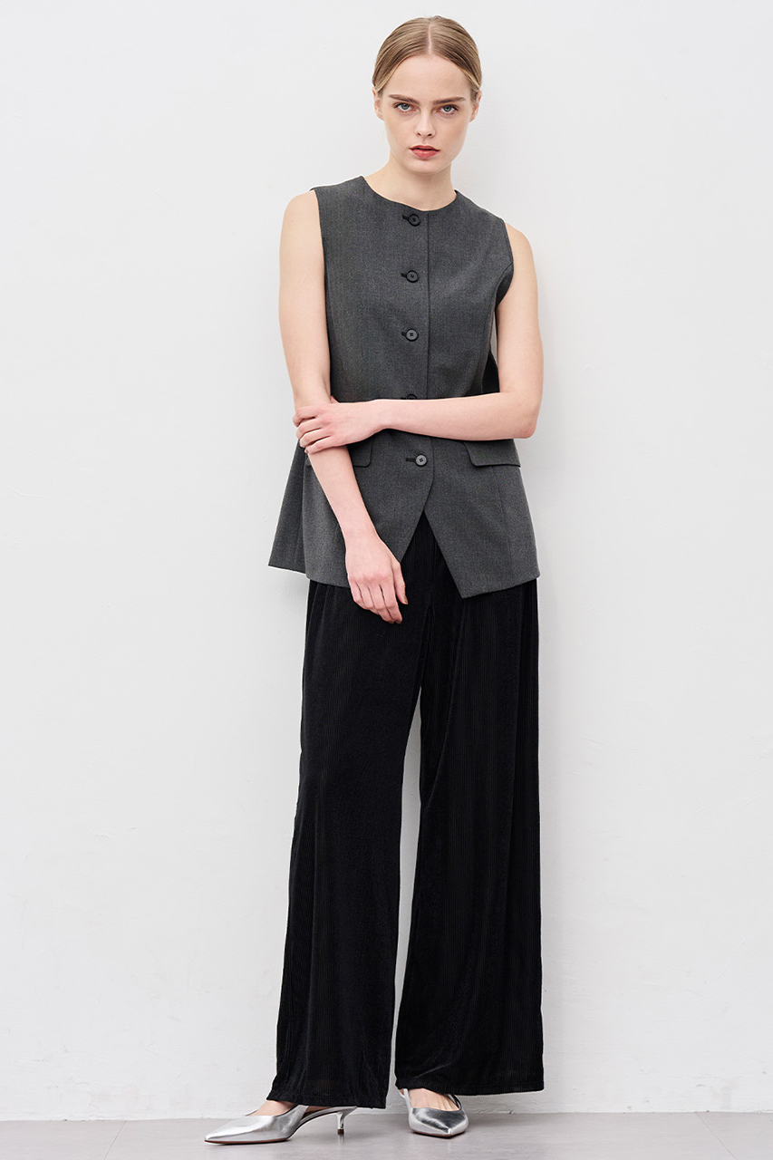 リブのようなタテ畝表情が特徴の透け感あるベロア素材です。