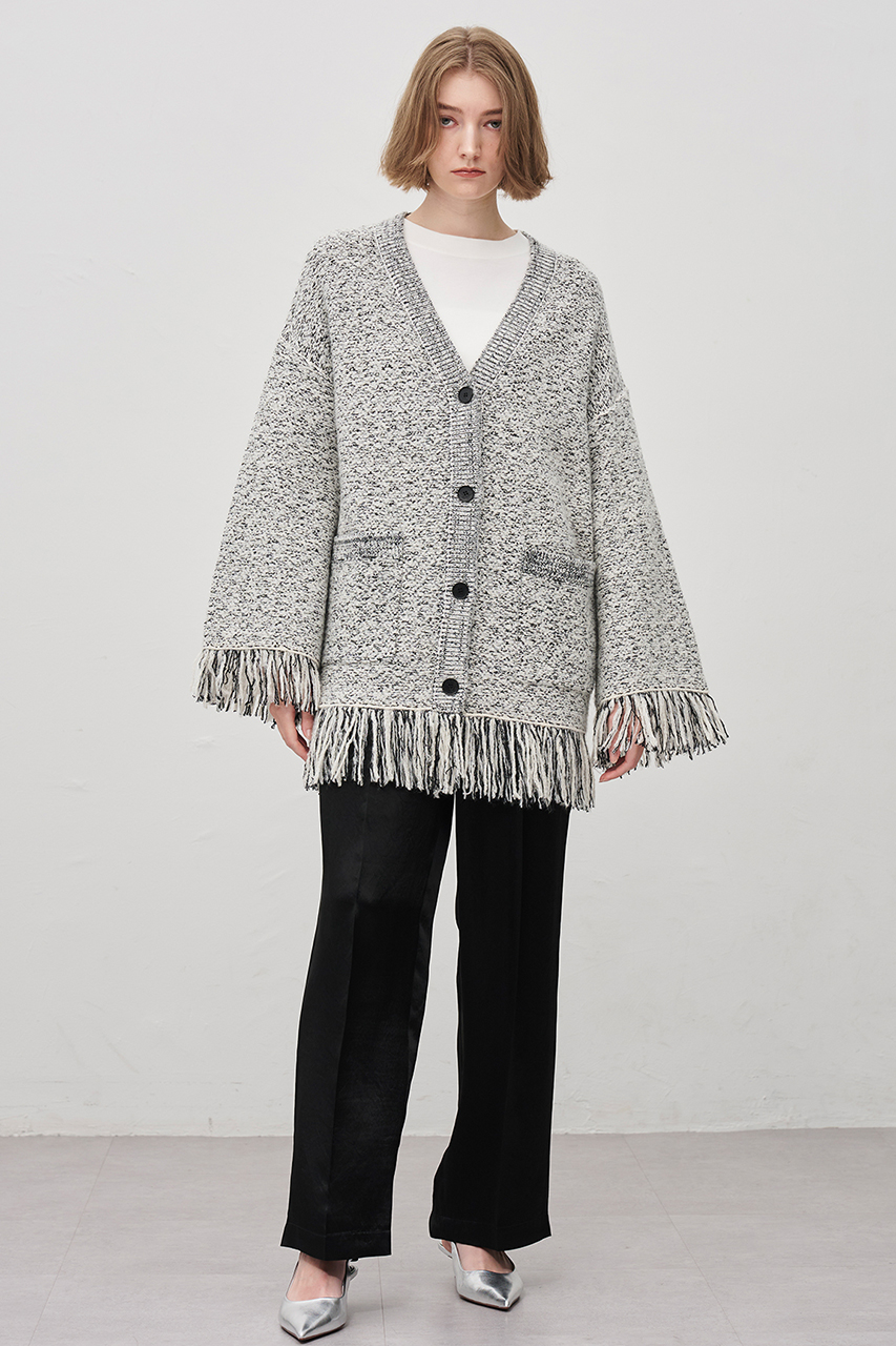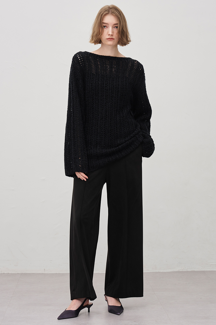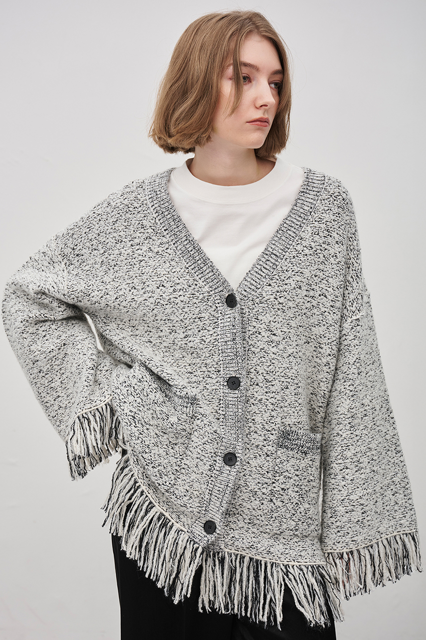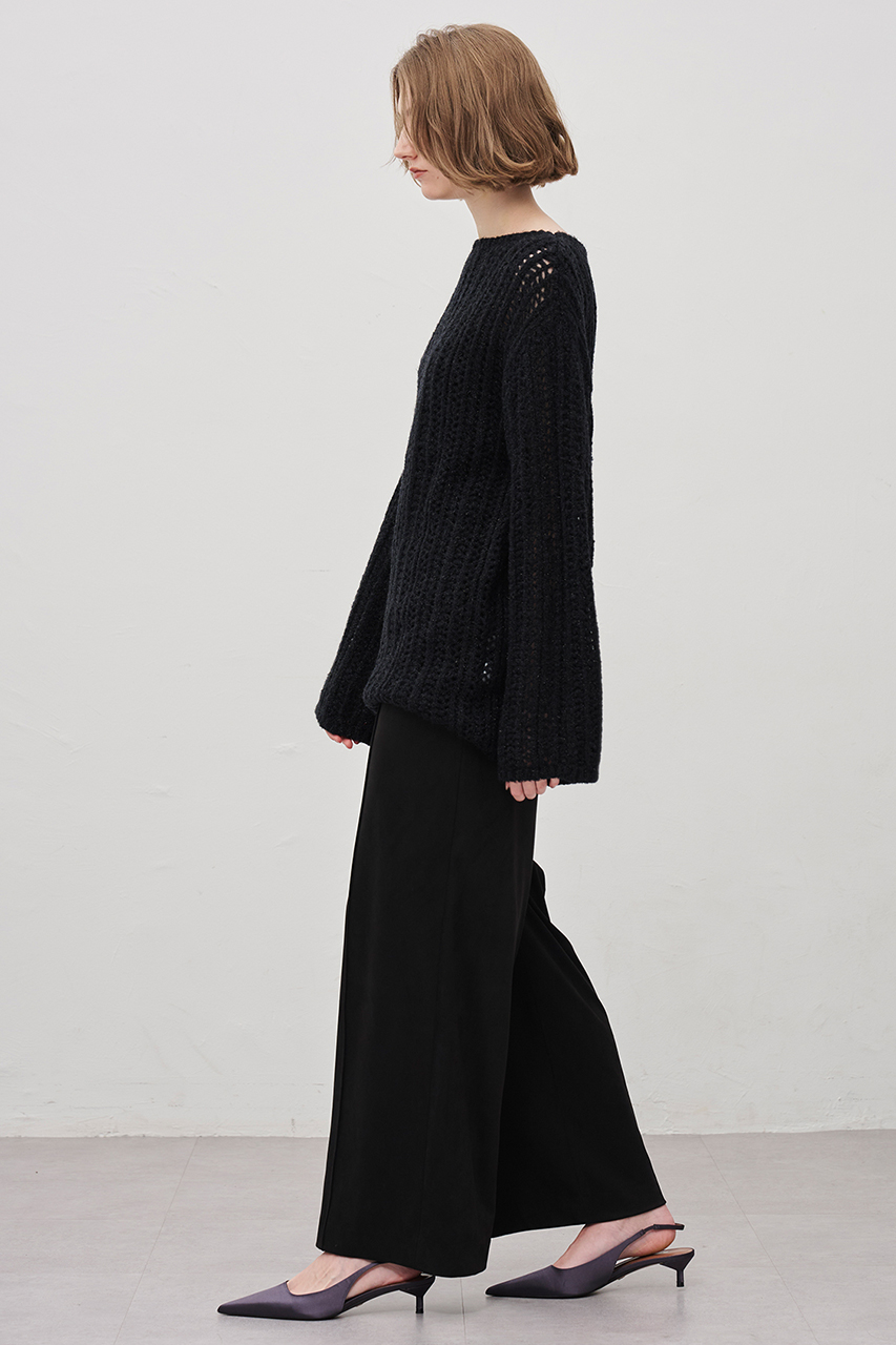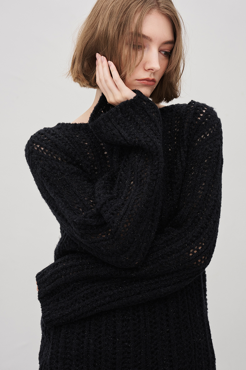 ツィード調の独特な編み柄とほど良いモヘアのへアリー感があり、温かみのある表情を出しています。