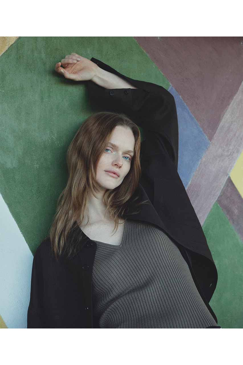 26SS今季の素材は、25SSよりupper hightsで開発した綿リヨセルの素材です。リヨセル混率が40%弱入っている為、独特な肌触りとドレープ感が特徴です。肌離れがよく、春~夏にかけても涼やかに着こなせる素材です。