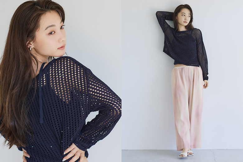 繊細なクロシェ編みにスパンコールをちりばめた、華やかで軽やかなニットセット。前後2WAYで着られるニットと、取り外し可能なホルターストラップ付インナーキャミのセットで、気分やシーンに合わせて自在にアレンジ。コンパクトな丈と抜け感のあるシルエットが絶妙なバランスを叶え、どんなボトムスとも好相性。1枚で旬のムードをまとう、主役級の1着です。