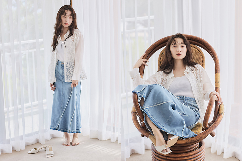 リメイク風のフリンジディテールがアクセントになった、マーメイドシルエットのデニムスカート。小柄な女性にも美しくフィットするよう、フリンジ幅をミリ単位で調整。柔らかなコットン素材で、シーズンレスに活躍します。シンプルなトップスを合わせるだけで、こなれた印象に。