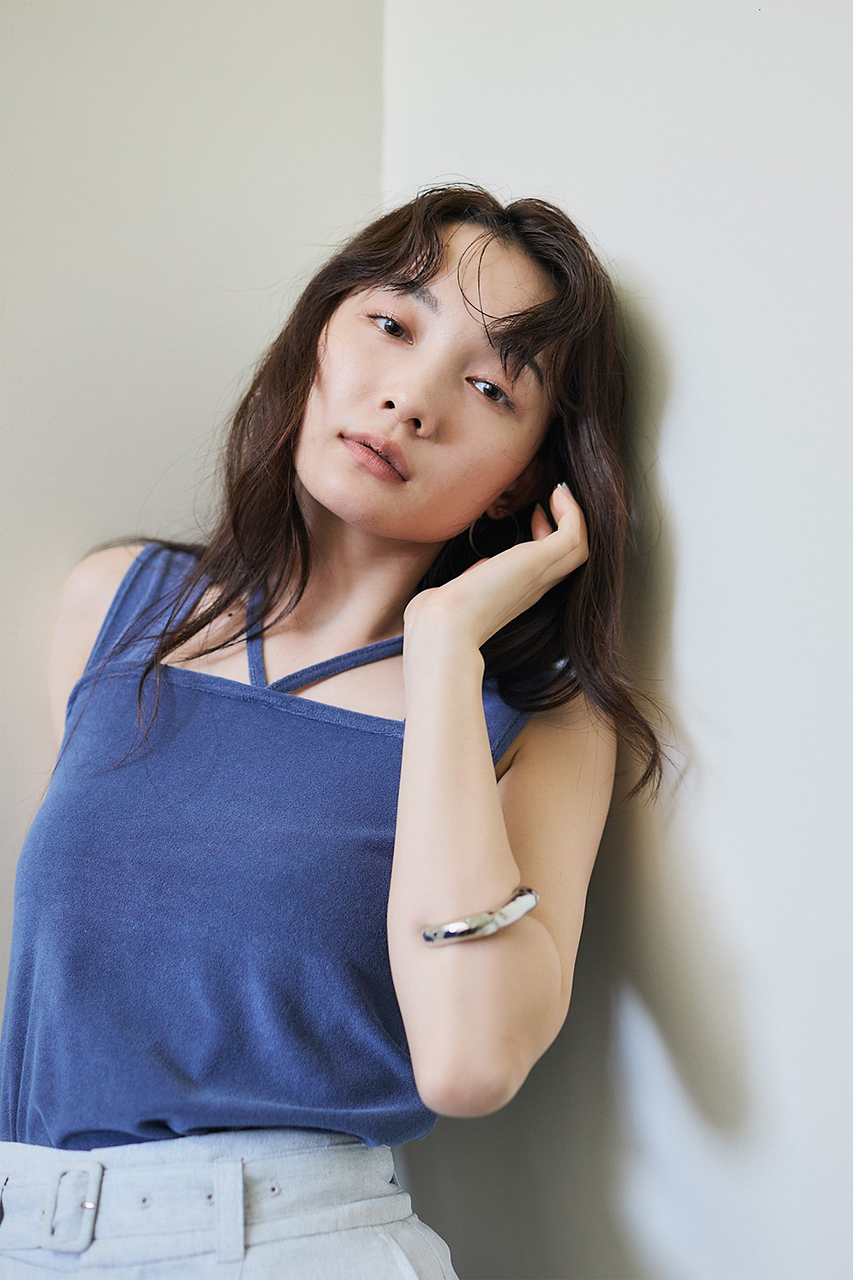 程よい透け感と配色が涼やかな、レディライクなポロニット。やや大きめの襟がモードなアクセントを添え、きちんと感と抜け感をバランスよく両立。計算された着丈とゆる過ぎないシルエットが、小柄な方にも美しくフィットします。さらりとした肌触りで、清涼感のある着心地も魅力です。ボリュームのあるボトムと合わせたら、大人の洗練された夏スタイルに。