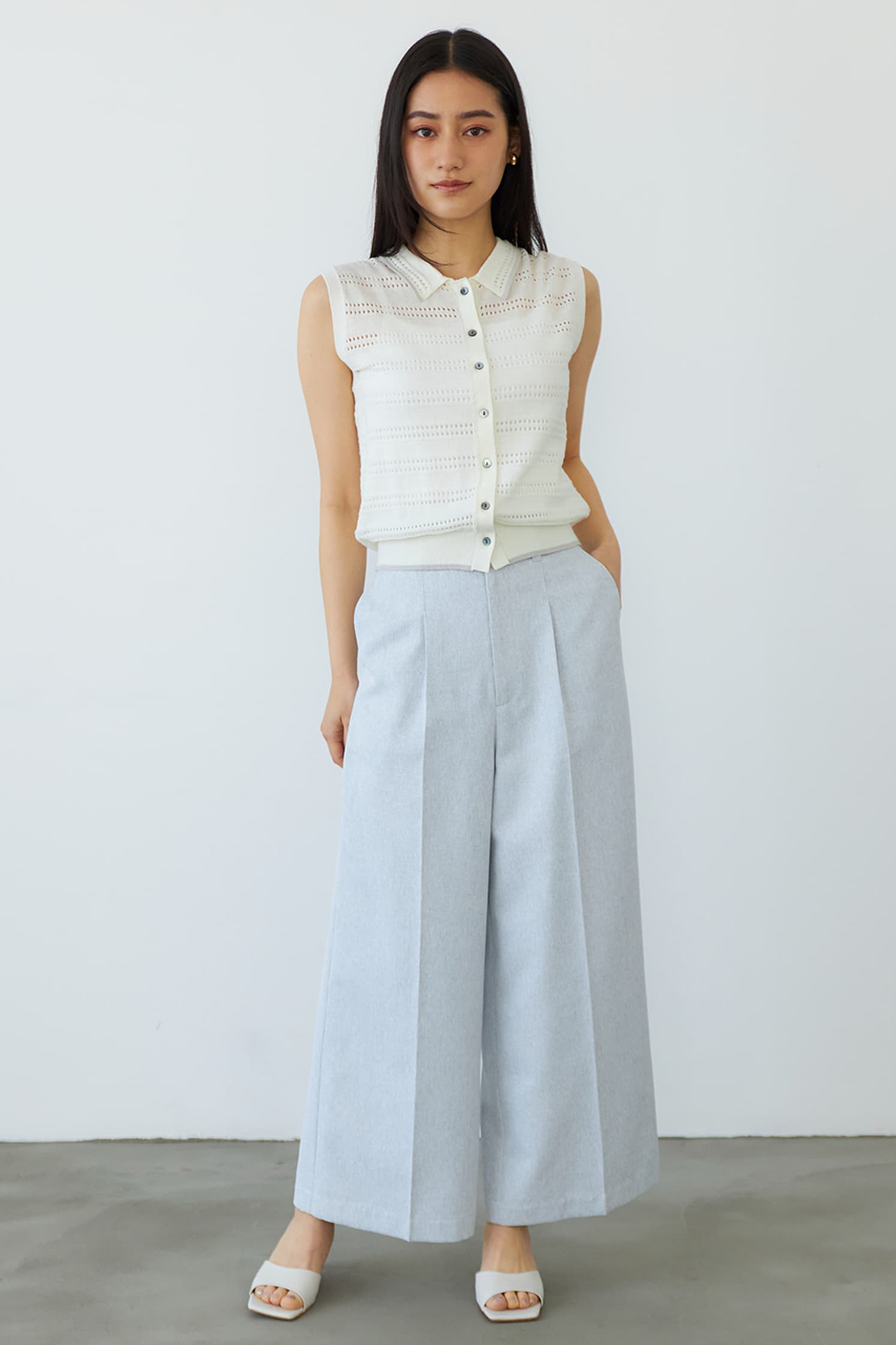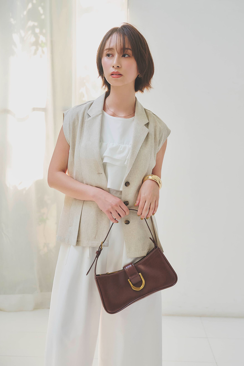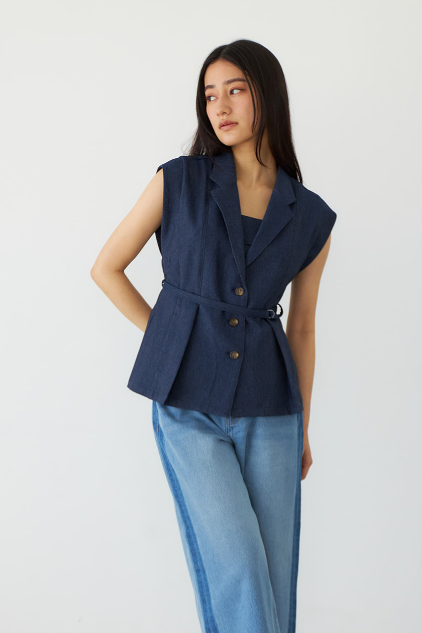 マニッシュなテーラードジレとビスチェ、ストンと落ちるワイドパンツのセットアップは、軽やかでこなれたムードが魅力。きちんと感と快適さ、どちらも叶える夏の味方です。デニム見えする素材ながら色落ちせず、接触冷感とストレッチ性を備えた快適な着心地も嬉しいポイント。さらりと羽織るだけで品よく決まり、ベルトでウエストマークすればスタイルアップも。休日も仕事の日も、頼れる2ピースとしてワードローブを支えてくれる存在です。