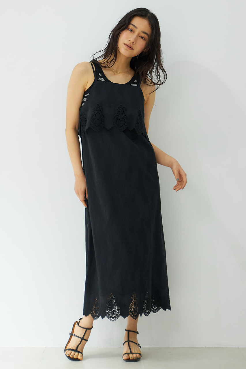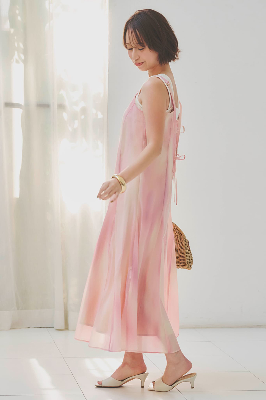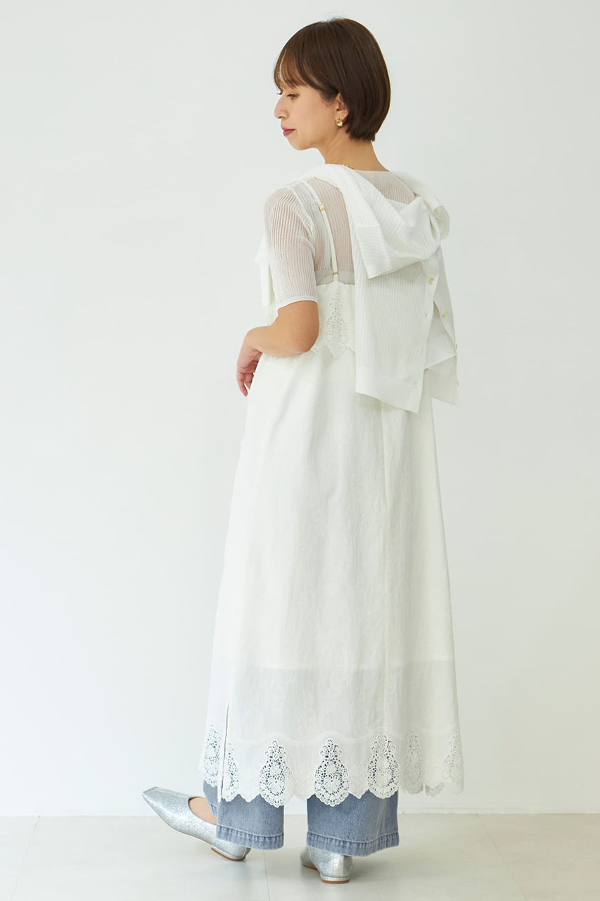 シアーなグラデーションプリントが目を惹くキャミワンピは、軽やかで風をはらむような素材感と、裾に広がる美しいシルエットが魅力。夏の装いに軽やかな高揚感をもたらします。透けを気にせず着られるインナーキャミ付きで、1枚でも安心。シワになりにくく、旅先や移動の多い日にも頼れる存在です。シャツやデニムとのレイヤードで印象を変えられるのも魅力。暑さの中でも気負わず着映えが叶う、頼れる夏の主役ワンピースです。繊細なレースがポイントのワンピースと、冷房対策の羽織としてセットアップで着られるシャツも要チェック!