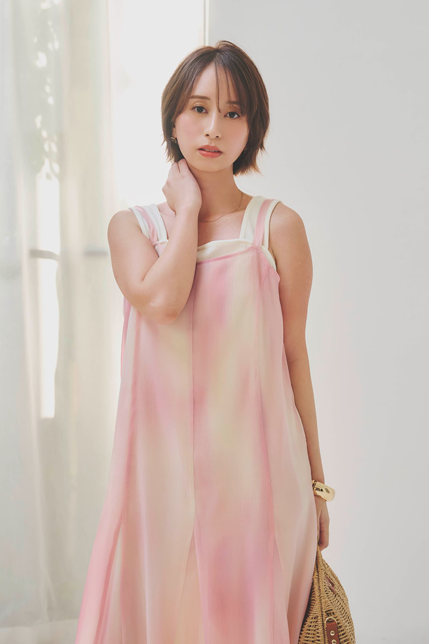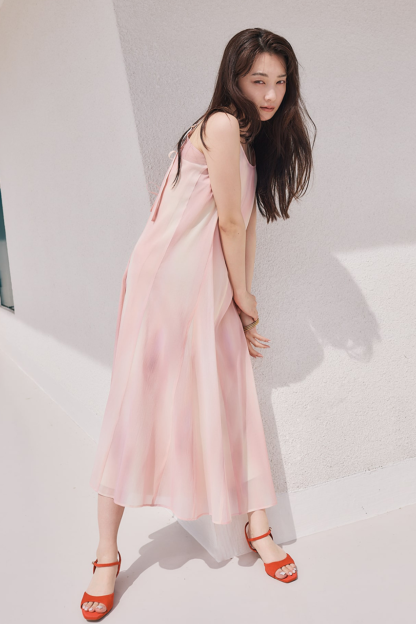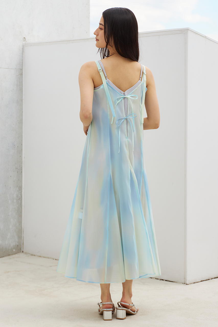 シアーなグラデーションプリントが目を惹くキャミワンピは、軽やかで風をはらむような素材感と、裾に広がる美しいシルエットが魅力。夏の装いに軽やかな高揚感をもたらします。透けを気にせず着られるインナーキャミ付きで、1枚でも安心。シワになりにくく、旅先や移動の多い日にも頼れる存在です。シャツやデニムとのレイヤードで印象を変えられるのも魅力。暑さの中でも気負わず着映えが叶う、頼れる夏の主役ワンピースです。繊細なレースがポイントのワンピースと、冷房対策の羽織としてセットアップで着られるシャツも要チェック!