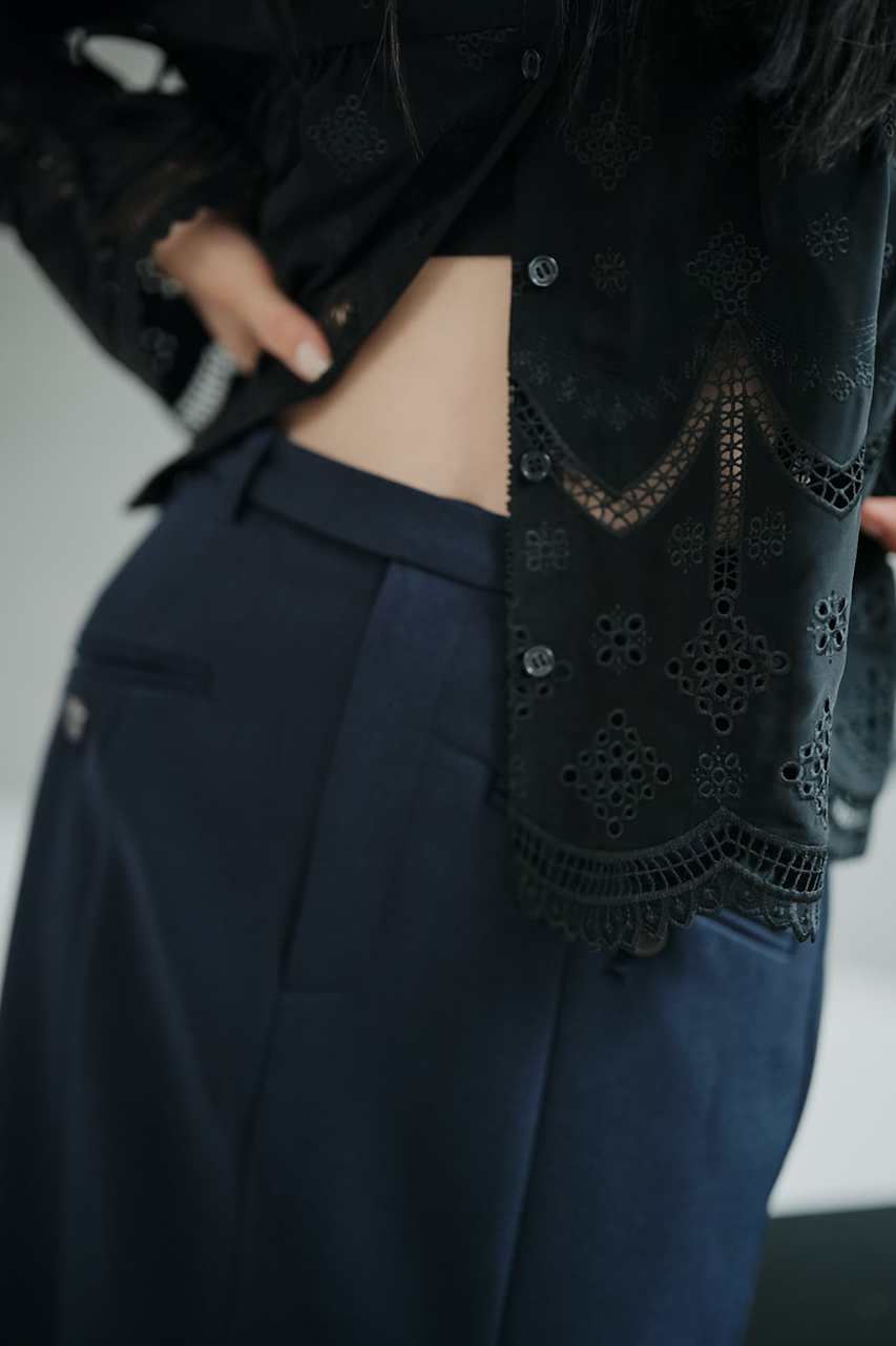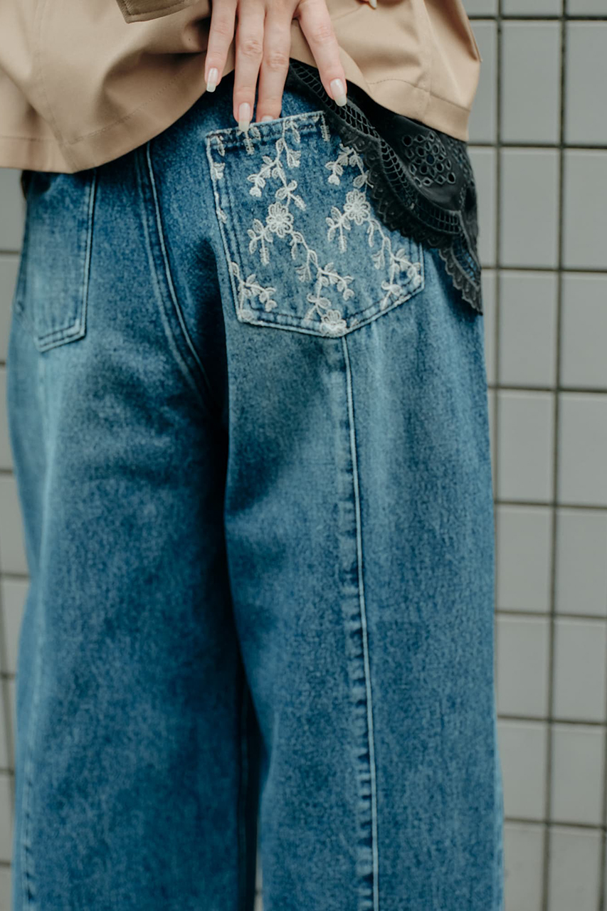 デニムも「エストラータ」オリジナルの繊細な花柄刺しゅうがクラフト感を漂わせつつ、大人に似合う上品さプラス。左右非対称に配した2種類の刺しゅうがアクセントとなり、カーブを描く脇線とセンターハギでスタイルアップも実現。程よい厚みのあるデニム地は、やや濃いめのインディゴとウォッシュブラックの2色展開。シンプルなトップスと合わせるだけで華やかに。マニッシュに着こなしたい日はジャケット合わせがおすすめ。刺しゅうブラウスと合わせれば、より華やかさを引き立てる着こなしが楽しめます。