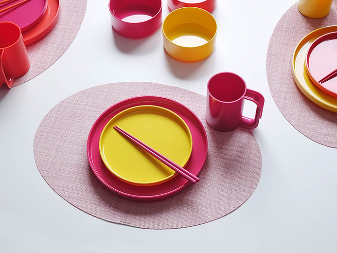 「ダリア」は気軽に華やかな食卓へアップグレードできるランチョンマット。立体的な型抜きと本物の花びらのように僅かに凹凸や皺加工を施した繊細で自然な風合いです。咲き誇るダリアの花を、メタリックかつモダンな色調で表現していて、大輪のダリアが咲き誇るように、食卓を華やかに演出できます。ティータイムや軽食にも使いやすいサイズ感です。アンダープレートとして食器を際立たせ、テーブルランナーとのコーディネートが愉しめるデザインです。