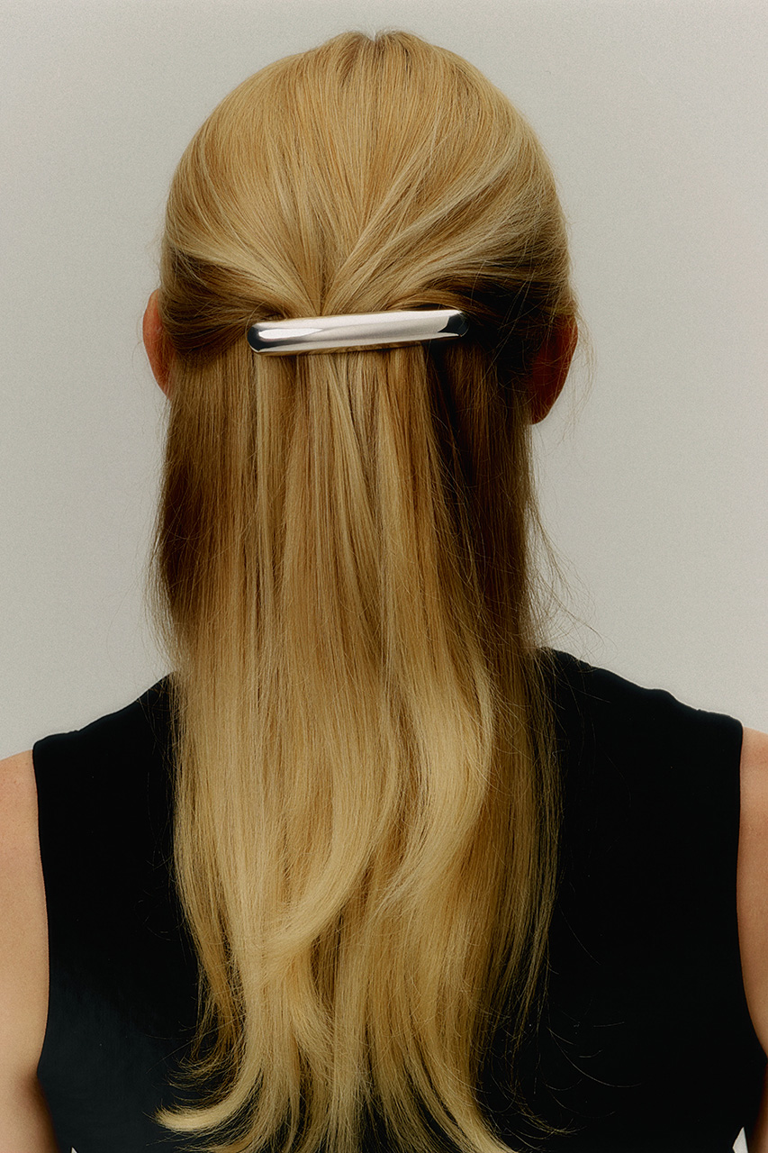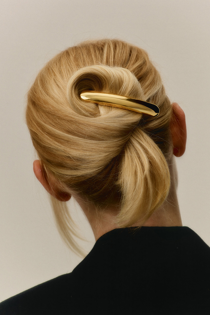 無駄をそぎ落としたデザインと滑らかなフォルムが、スタイリッシュな存在感を放つバレッタ。程よい輝きが装いに自然に溶け込み、普段のスタイルを格上げします。ラフにまとめたアップヘアやタイトなスタイルにも美しく映えるアイテム。