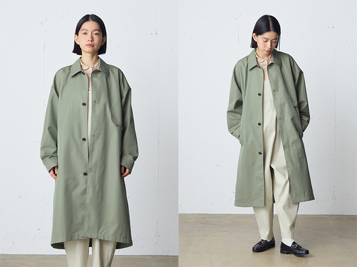 60番手のコットン糸を使用したCツイル素材を採用したステンカラーコート。