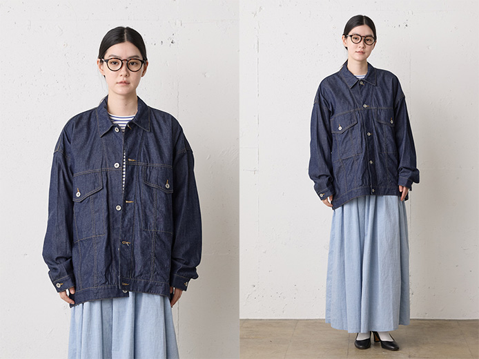 ライトオンスデニムを使用したワイドシルエットのデニムジャケット。