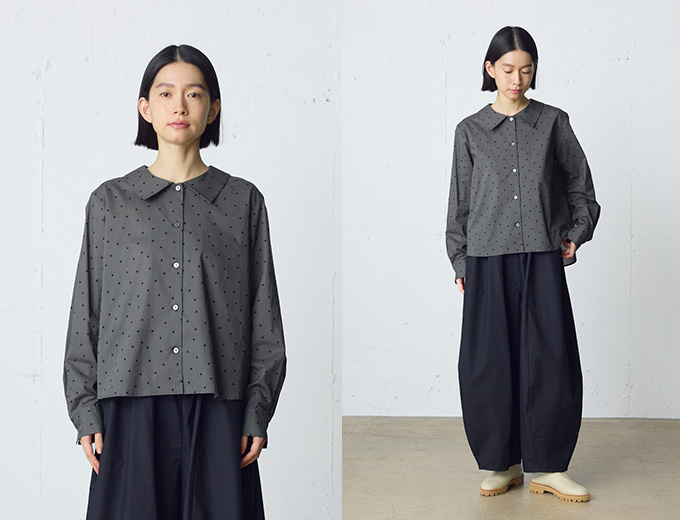 繊細なドット柄をのせた、60ローン素材のフラットカラーシャツ。