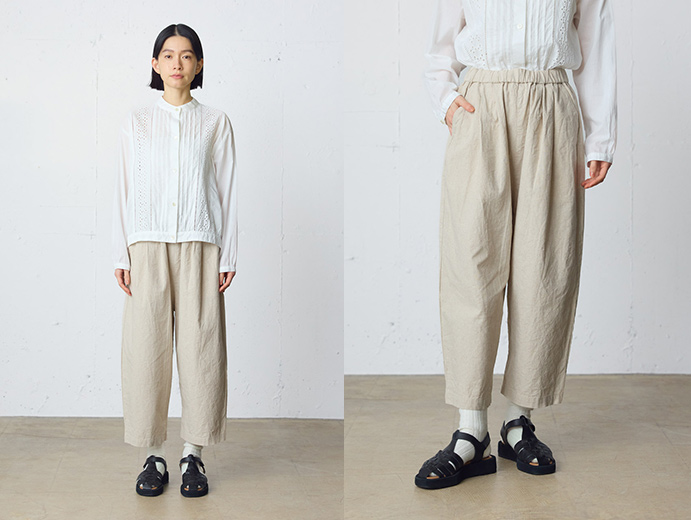 コットンリネンのキャンバス地を使用したイージーパンツ。