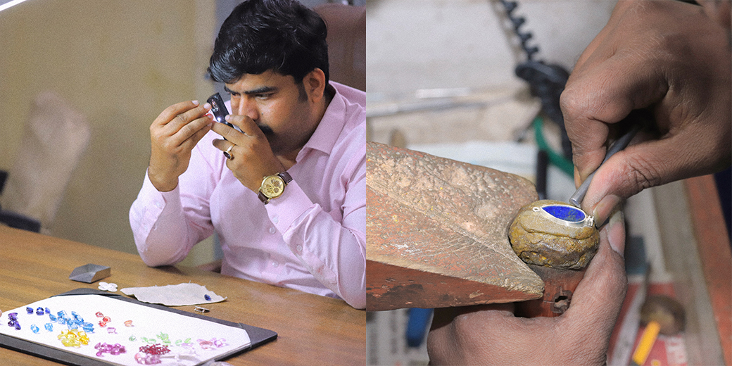 石の仕入れからオリジナルカット、石留め、磨きまでを一貫して行い、デザイナーの旬な発想に職人の経験とインドの美意識が融合。一点一点、丁寧にジュエリーが形になります。