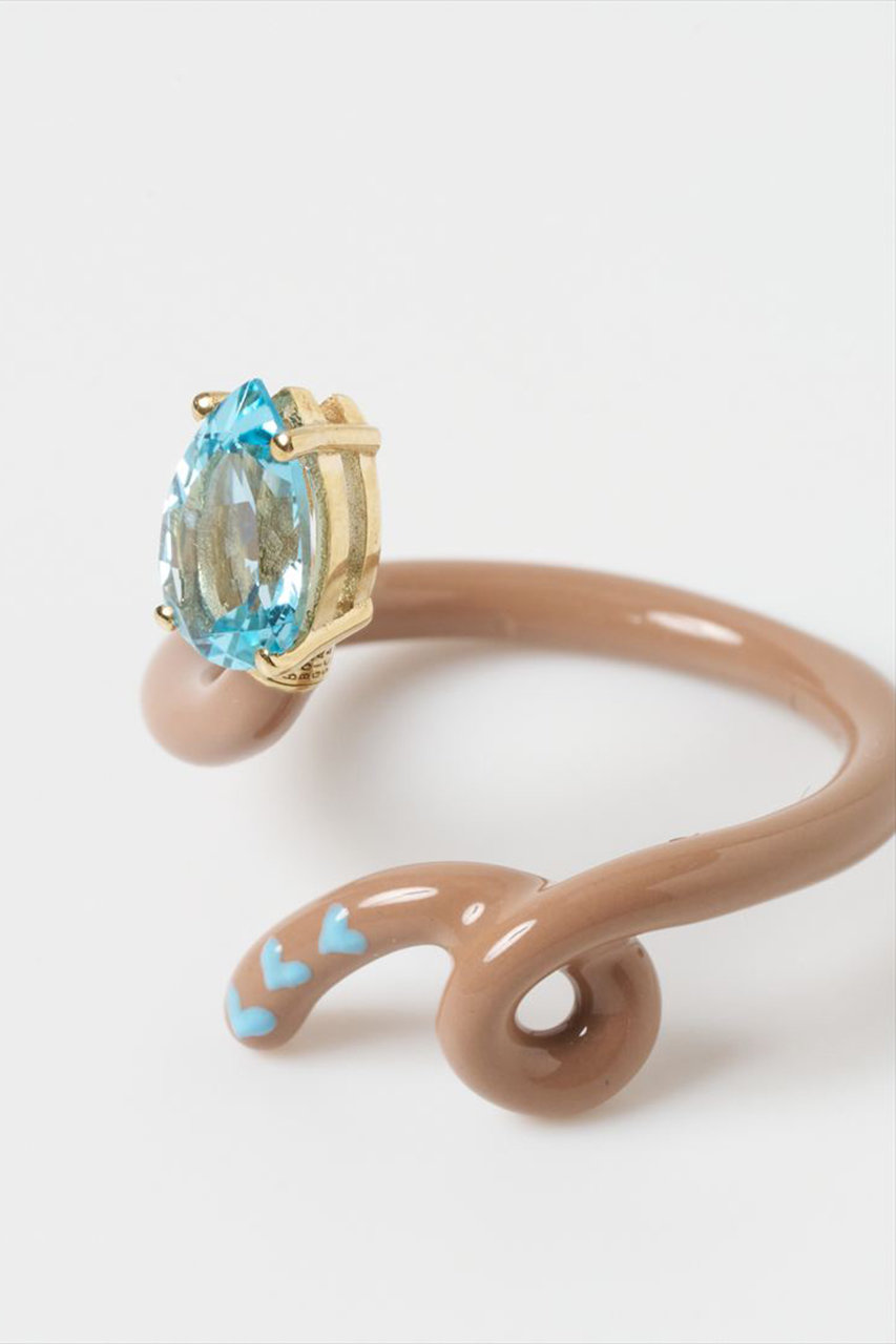 1990年ミラノ生まれのデザイナー、ベア・ボンジェスカが2013年に設立。ポップカルチャーと現代アートを融合させた、エナメルの鮮やかなカラーとゴールドを組み合わせたジュエリーは、独創性と躍動感に満ち、まるでアートピースのよう。数々のアワードを受賞し、2020年には天然ダイヤモンドを用いたカプセルコレクションが高く評価され、De Beers Groupが選ぶ注目デザイナーにも選出。イタリアを代表する新世代ブランドとして、世界のミレニアル&Z世代を魅了しています。