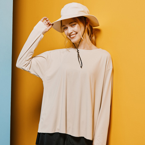 ベーシックなワンウェイ・プリーツスカートは細かなアイレットのスポーティーな素材とレトロなオールドローズプリントの意外性のある組合せが新鮮。ハイゲージニットを合わせてグッドガールなスタイルも素敵。