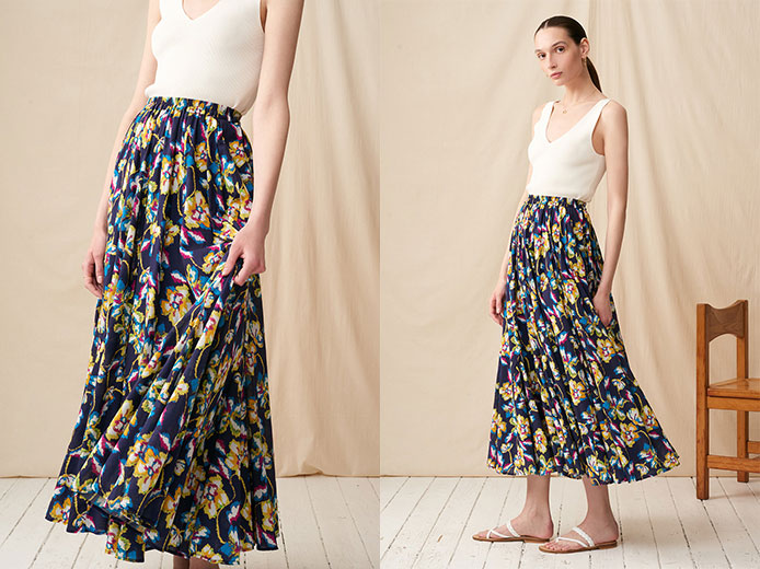 動くたびに裾が揺れ、美しい印象を残す”月影のスカート”。軽やかなコットン素材とゴム仕様のウエストで、着心地も抜群。大人シックなカラーが上品なエッセンスをオン。コーディネート次第で、エレガントにもカジュアルにもスタイリングを楽しめるのが魅力。
