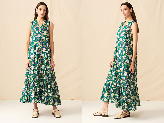美しく広がっている裾が特徴の”夏の月影のドレス”が到着。デザイナー”Marie Weston”もよく着ているこの1枚は、動くたびに揺れ、エレガントな印象をキープ。シャープなVネックと女性らしいバランスが絶妙で、洗練された大人にぴったり。休日のお出かけやデート、旅先のディナーなど、今季の主役としてたくさん着まわして。