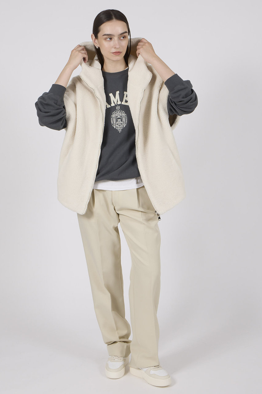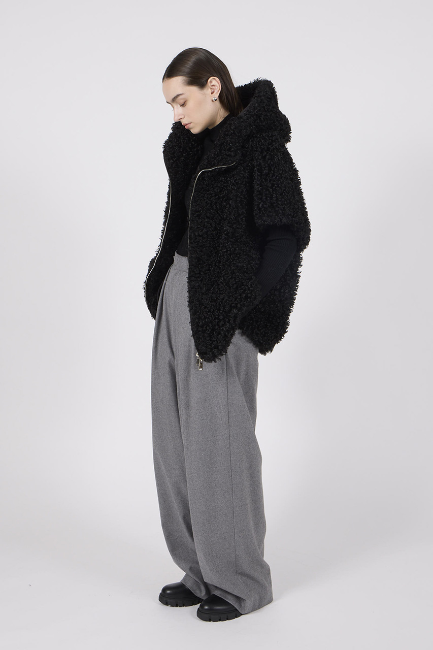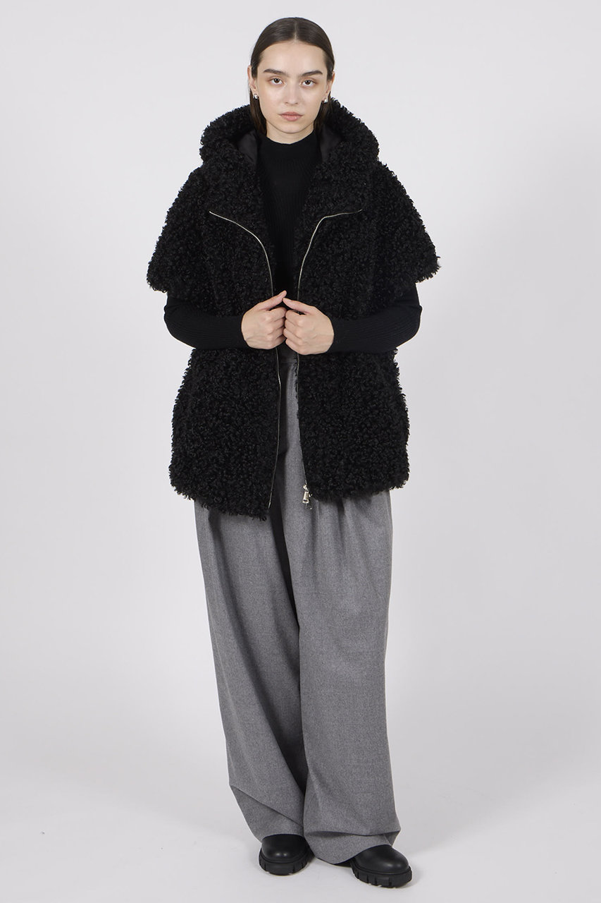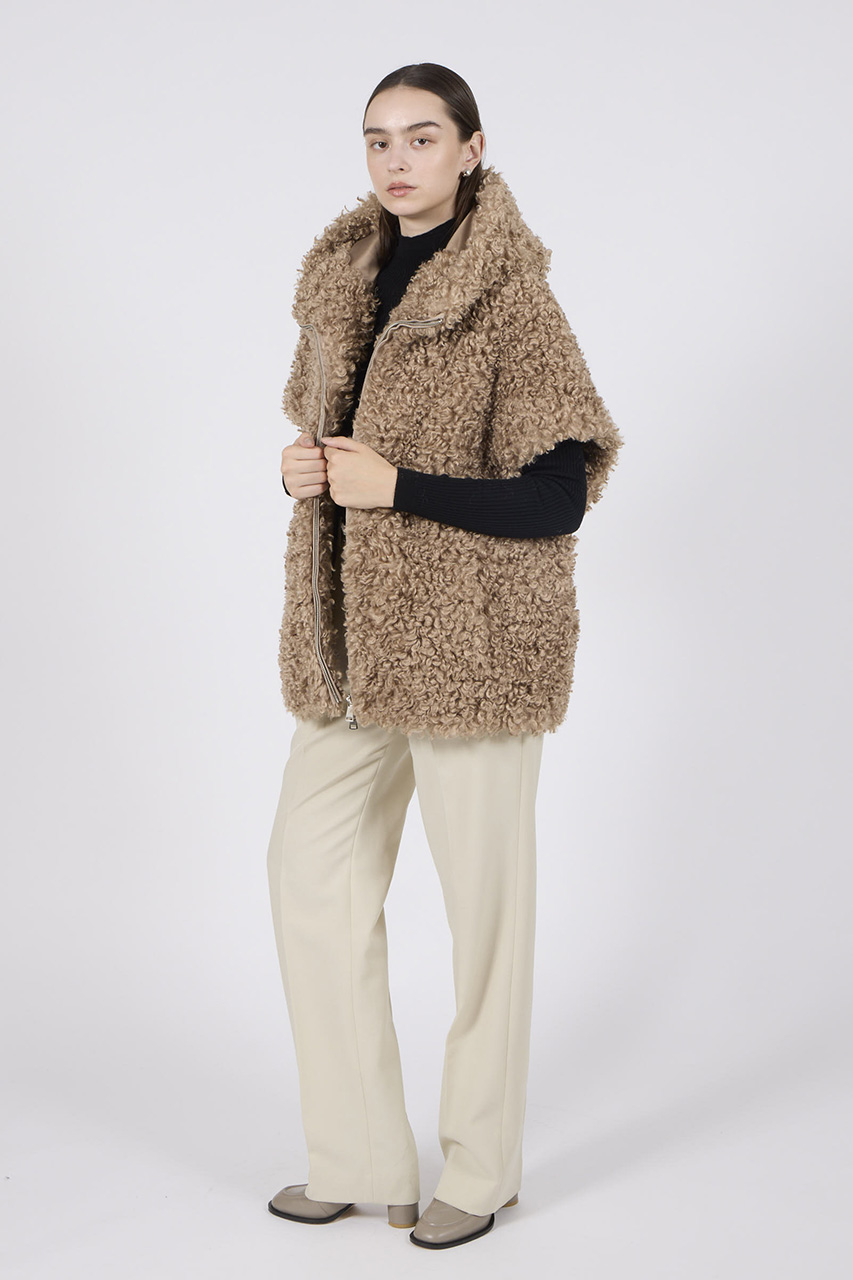 羽織るだけで「こなれ感」が漂うラム風素材のジレ。ふわふわとした高級感ある質感が、トレンドとシーズンムードを同時に叶えます。肩を覆うフレンチスリーブは、華奢見え効果も抜群。ゆったりしたシルエットとヒップが隠れる丈感で、厚手ニットからシャツまでレイヤード自在。春まで使える万能なアイテムです。