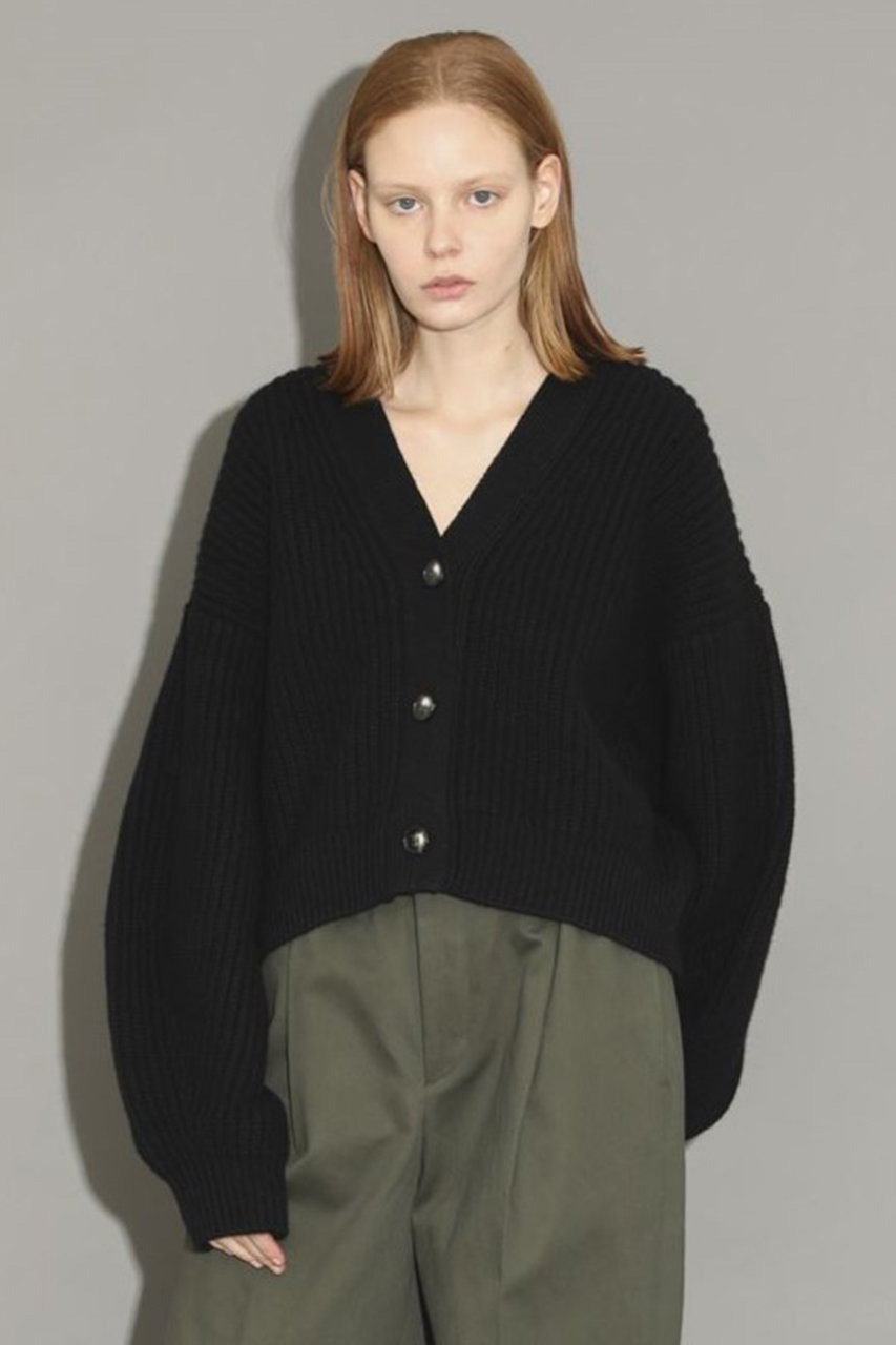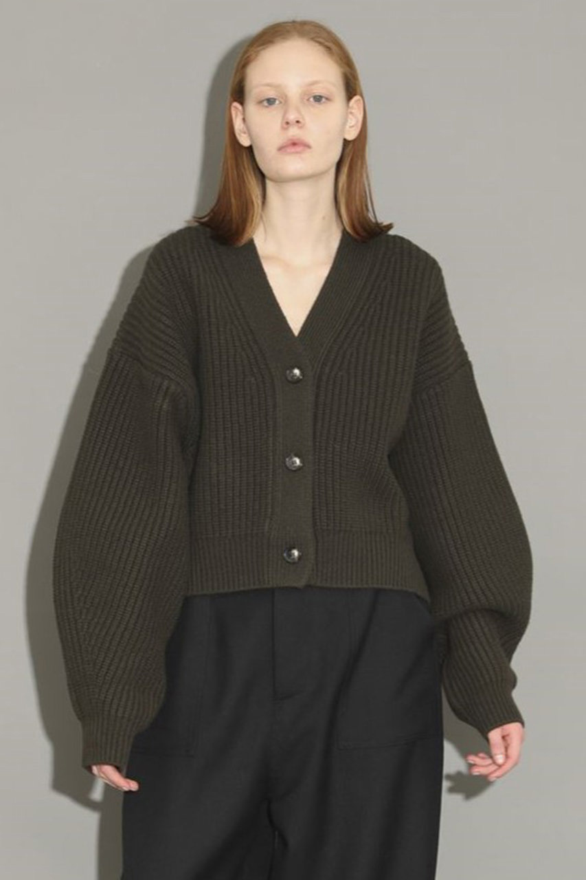 ふくらみと柔かさが特徴のバルキーなクロップドカーディガン。