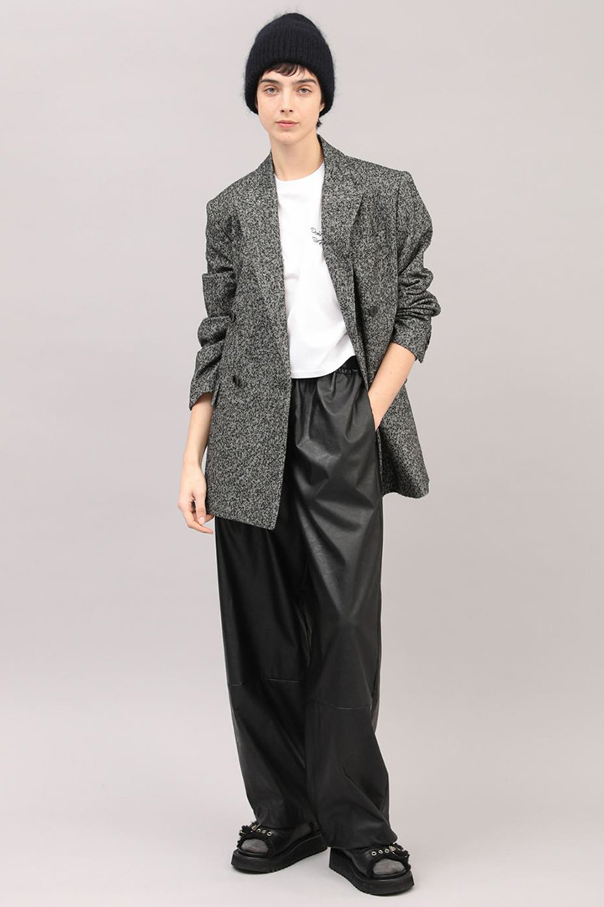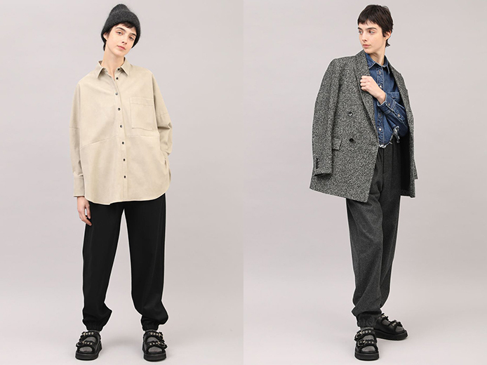 ほどよいハリと、立体感のある丸みを帯びたカービーラインのワイドシルエットが体型カバーになり、モードカジュアルな着こなしの必須アイテムとなりそう。