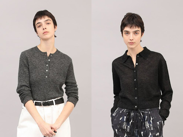 繊細なイタリア製のモヘア糸をワイドリブ組織で編み上げたへアリーな表情と柔らかな風合いのヘンリーネックプルオーバー。カットソーとレイヤードに着こなすのもおすすめです。