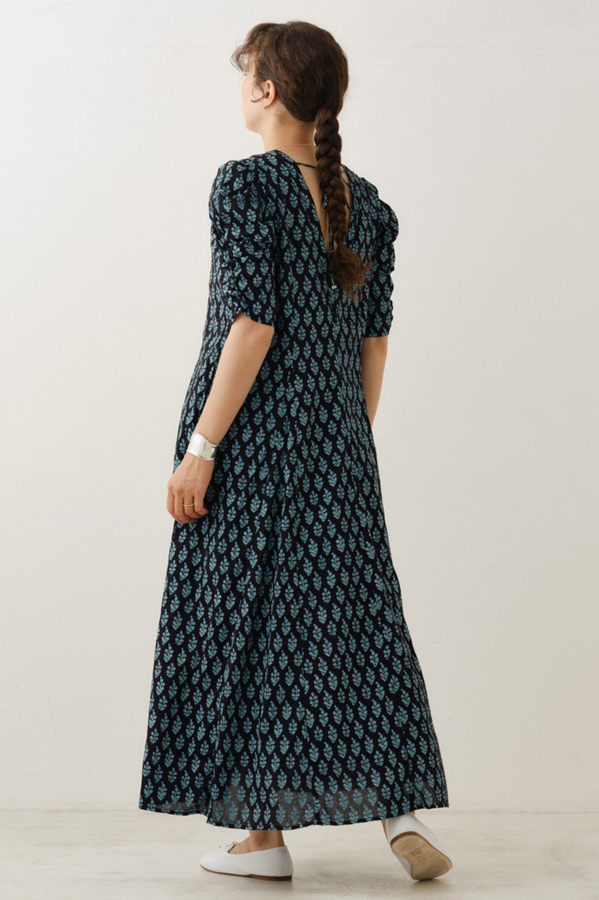 COTTON VOILE ETHNIC プリントギャザースリーブドレス