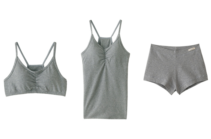 快適な着用感を追求したリラックスブラは、ほどよいフィット感がくせになりそう! バストをしっかり包み込みつつも、ストラップ部分は細めに作られていて、アウターにひびきにくいことも◎。フィット感のあるスポーツタイプのフィットインブラキャミソールは、ヨガやマタニティー、産後にも使えそうなアイテム。パットはブラも、キャミソールも取り外し可能なので自分好みのバストメイクが実現できるのもうれしい。ほどよくストレッチの効いたボクサーショーツと合わせるのもおすすめ。