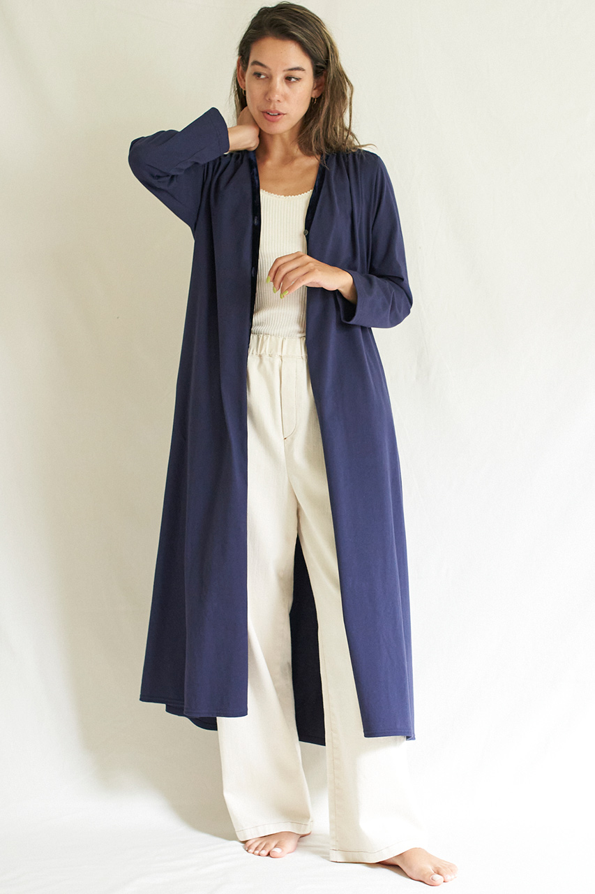 前開きタイプは、1枚でワンピースとして、また前を開けてガウンとしてさっと羽織れる2way仕様がうれしいポイント。汗を吸い取ってくれるオーガニックコットンは、通気性がよく肌を快適に保ってくれる優しい素材です。季節の変わり目の温度調節にも重宝するはず。