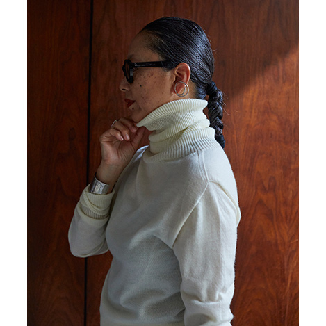 エクストラファインウールと呼ばれる、オーストラリアの柔らかで上質なメリノウール糸を無縫製で仕上げたタートルトップスです。