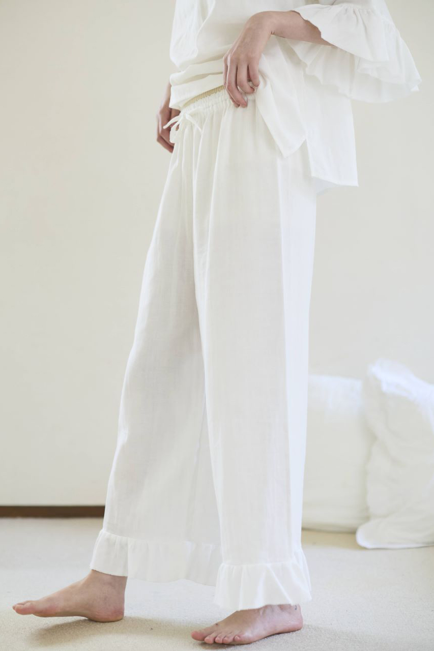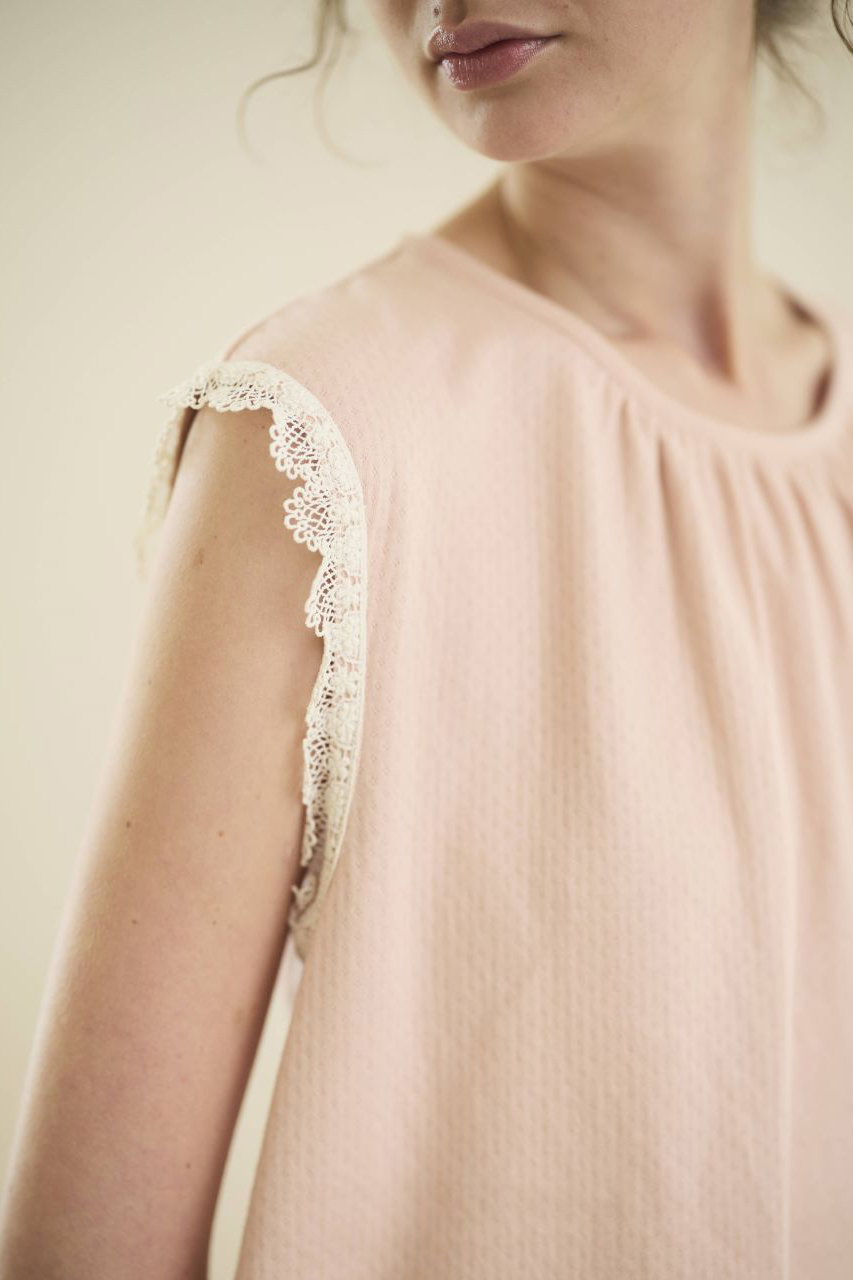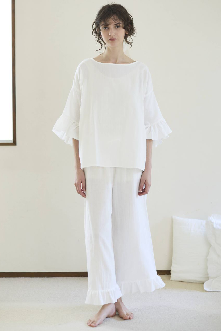 熱のこもりを防ぎ、涼しく眠れるのがスリーブレスタイプのナイトウェア。化繊素材や通気性の悪いウエアを着ていると、身体の周りに湿度が溜まることも。そして熱がこもると、汗ばんでしまったり、寝苦しくなってしまいます。オーガニックコットンの肌にさらっと馴染む質感と吸水性で、眠りの時間の肌ストレスを軽減させてあげてください。