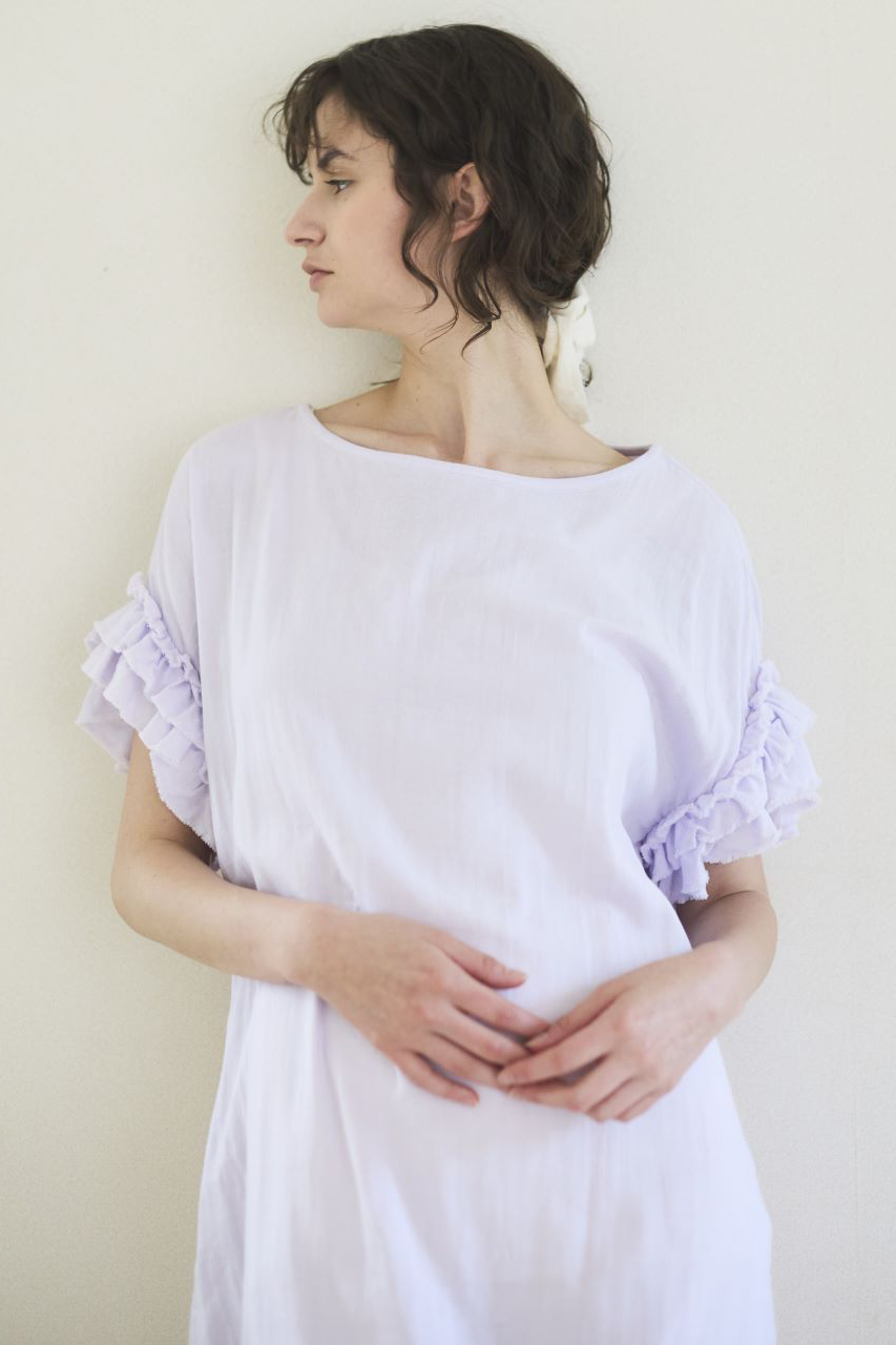 袖口や胸元にあしらったフリルやレースがさり気ない華やかさを演出してくれます。
