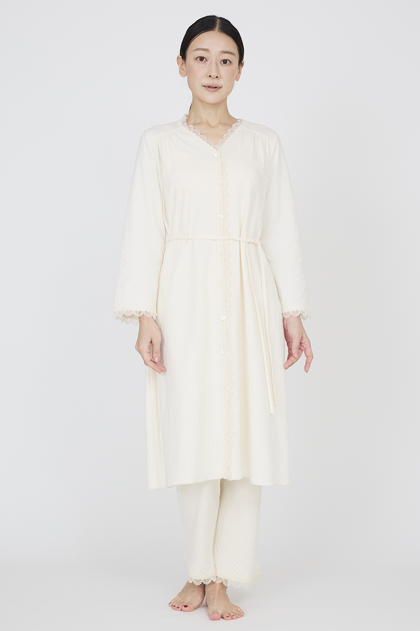 優しい肌心地のオーガニックコットン素材のナイトウェアは、吸湿・吸水性、通気性をバランスよく備えたストレスフリーな素材です。通常のコットンに比べて繊維がダメージを受けていないため、弾力性があり、肌に触れた瞬間に「ほっ」とするような柔らかさがあります。着用するほど、お洗濯するほどに自分の肌に馴染み、自分だけのナイトウェアに育てる楽しみも。オーガニックコットンのナイトウェアを纏って、肌から緊張をほぐし、リラックスした眠りを楽しんでみてください。