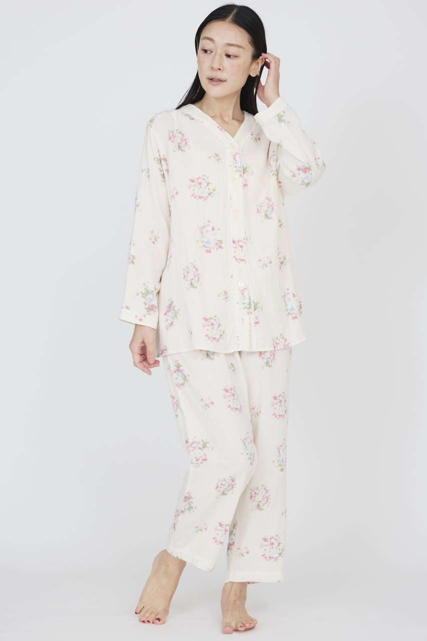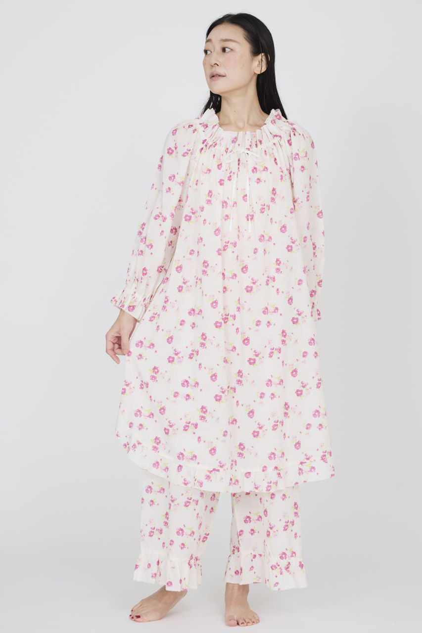 締め付けがなく、身体を優しく包み込む「ナナデェコール」のナイトウェア。甘やかなフリルやレース、フラワープリントがお風呂上がりの素の自分を優しい印象へ、そしてオーガニックコットンの柔らかな肌触りがリラックスモードへ導き、深い眠りのモードへとシフトしてくれます。大人フェミニンの優しい雰囲気で、ゆるやかな眠りの時間を体感できそう。