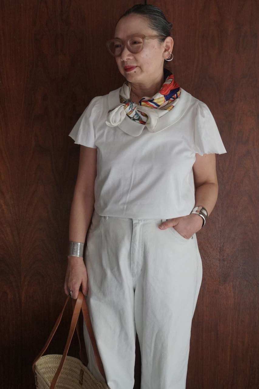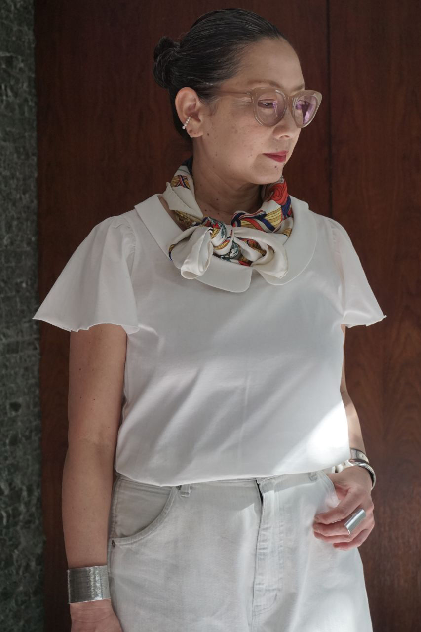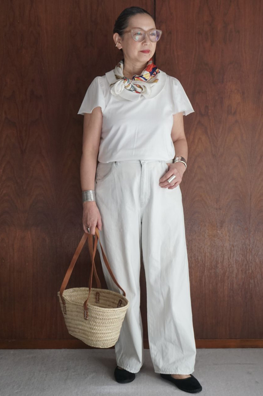 ラウンドカラーがクラシカルな雰囲気のオーガニックコットン素材のラウンドカラーTシャツは、子供っぽくならないように胸元の程よいあきや袖のフリルで抜け感を出しました。大人の甘さを演出しながらブラウス感覚で着用でき、スカーフやアクセサリーで印象を変えられ、どんなボトムにも合わせやすいデザイントップスです。ワイドTシャツは、体型をひろわないワイドなシルエット。ルーズにみえない絶妙な袖の丈感やバックスタイルのデザインなど、ゆるさがちょうどいい大人の「余白」Tシャツです。