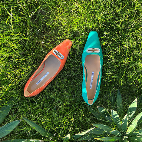 2023年春夏のテーマは、“SICILY TEXAS(シチリア テキサス)”。伝統的なシチリアの風景や工芸品にインスパイアされた色彩豊かなカラーパレットと、シチリア特有の文化から着想を得たコレクション。アイコンシリーズの“ANELLI(アネッリ)”からは、新しいプレート&バックルデザインが登場し、より新鮮な表情に。また、モダンな美しさが際立つ立体的なフレアヒールのミュールなど、ヒールデザインもアップデートされています。