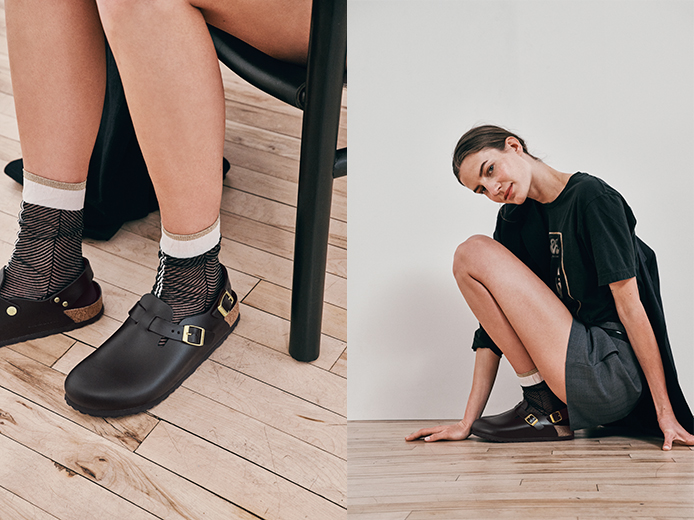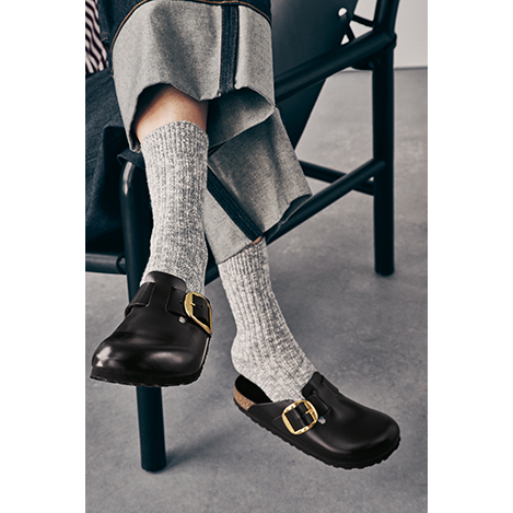 「ビルケンシュトック」の名品“Boston”は、季節を問わず活躍する定番クロッグ。本革ならではの艶ややかな質感にビッグバックルをあしらい、リュクスな存在感をプラス。自由にフィット感を調整できるストラップは、日常の動きに寄り添う考え抜かれた設計。中敷にはピヌマトレザーを全面に使用し、足を包み込むような極上の履き心地を実現。天然ゴム混合のコルクフットベッドが足の形に優しくフィットし、長時間の着用も快適。“Made in Germany”の確かな品質が、日々のスタイルに品格と安心感を与えてくれます。