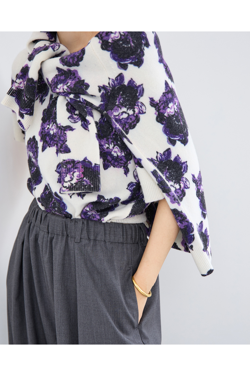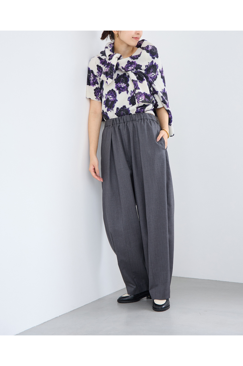 華やかなフラワープリントを施した「レリタージュマルティニーク」のアンサンブル。シンプルなスタイリングに合わせるだけで主役になる、インパクトのあるアイテムです。