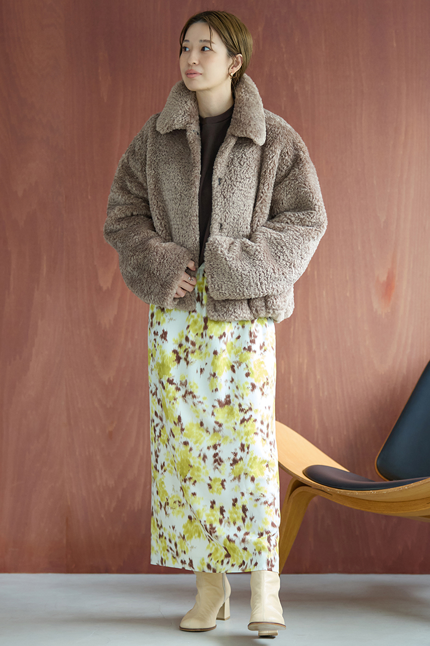 柔らかなフェイクファーがシーズンムードを高めるハーフ丈ブルゾン。カジュアルにもフェミニンにも映える万能アウターです。