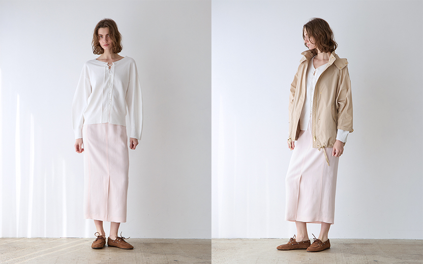 26SS先行予約がスタート。柔らかなベビーピンク、軽やかなブルーのグラデーション、ピュアホワイトの透明感。春の柔らかな空気を纏った自然と明るい気持ちになるようなカラーパレットの26SSコレクション。
