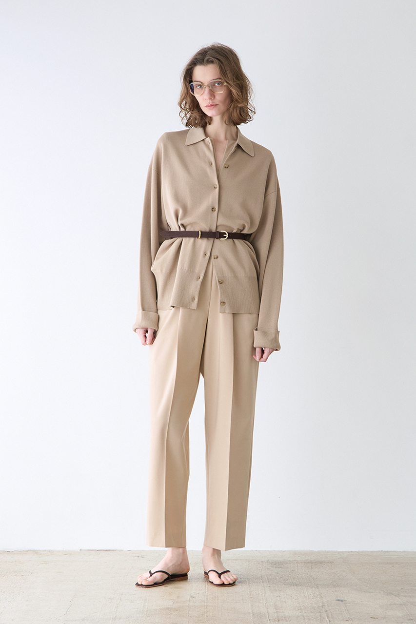 まだまだ取り入れたいポロカーディガン。真面目になりすぎないよう、たっぷりとボリュームあるシルエットに。カジュアルにもきれいめにも見せられます。