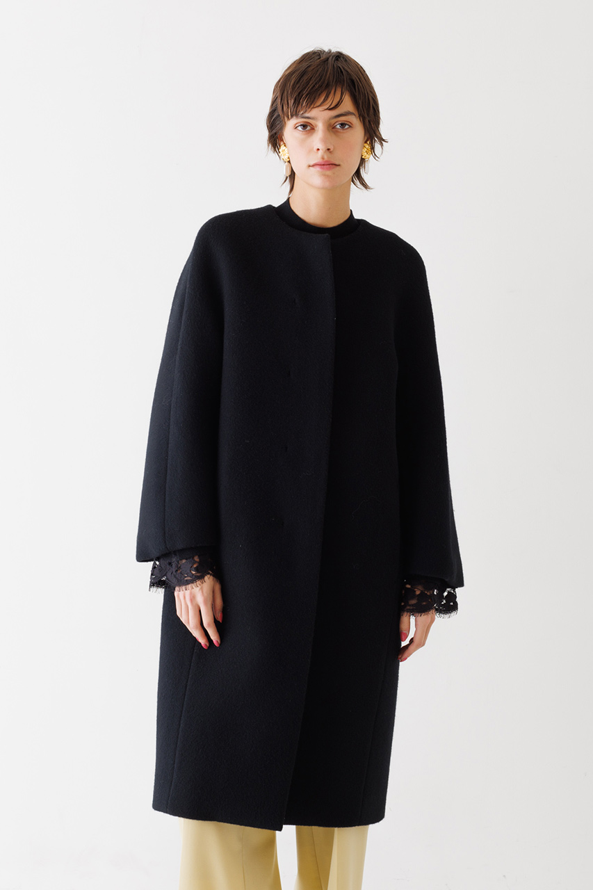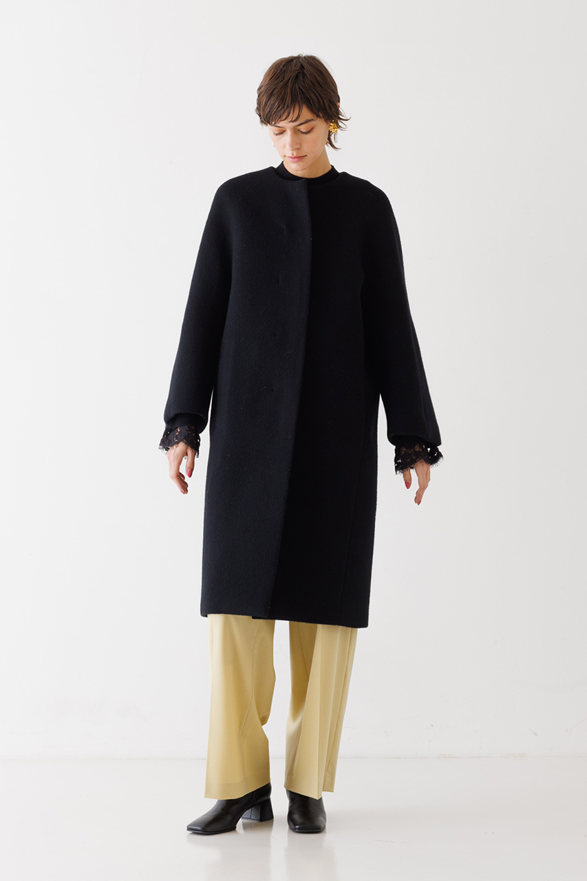 - 「デザインワークス」きれいめに着こなせるノーカラーのコートをチェック