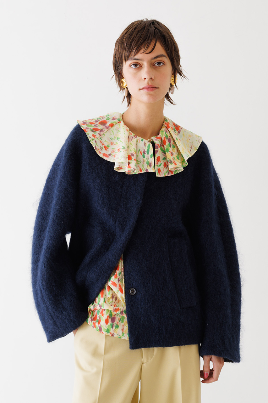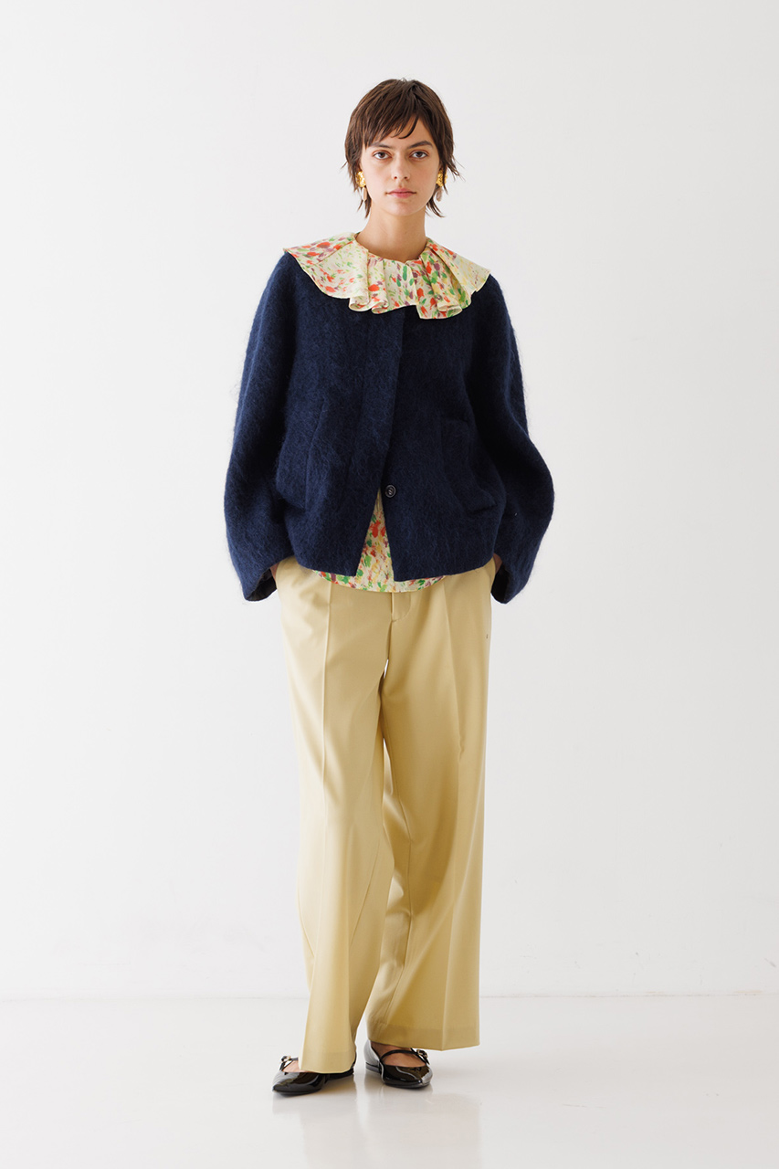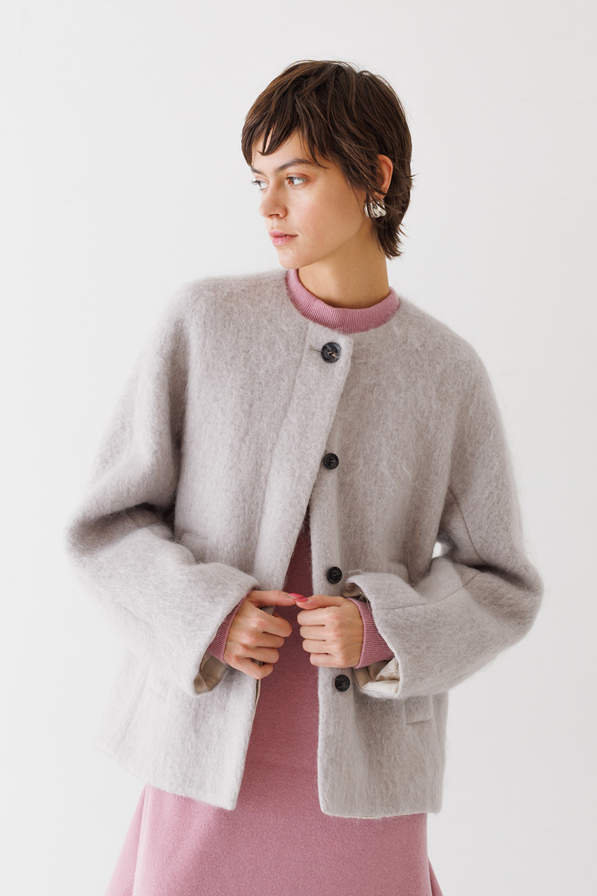 ロング丈は袖口が広めのデザイン。インナーのデザインを見せたりグローブを合わせたり、手元のスタイリングが楽しめます。ショート丈はシャギー素材でエレガントな印象に。インナーの襟元を見せたり、ストールを合わせても◎。